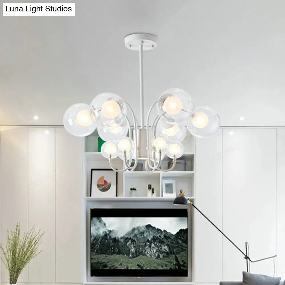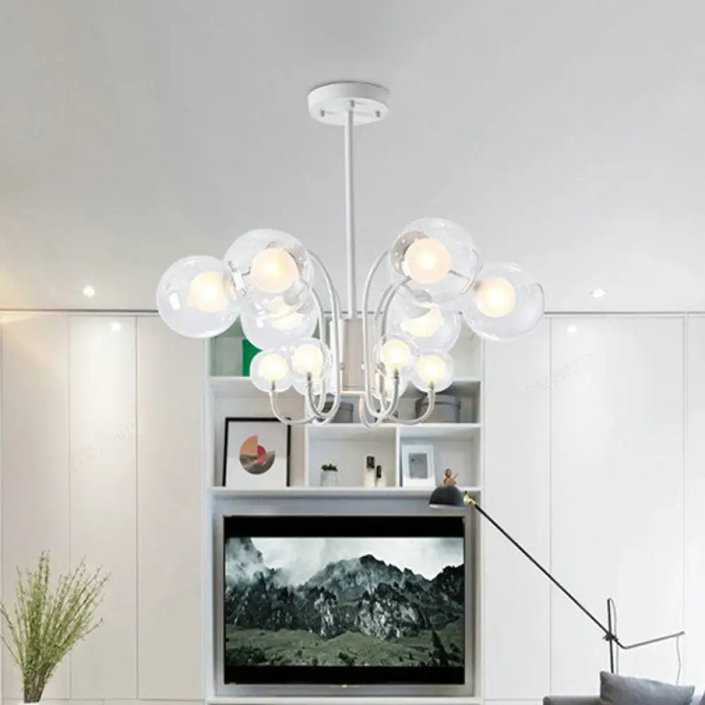 Lámpara colgante contemporánea de cristal transparente con 12 bombillas: Lámpara de araña de burbujas blancas
