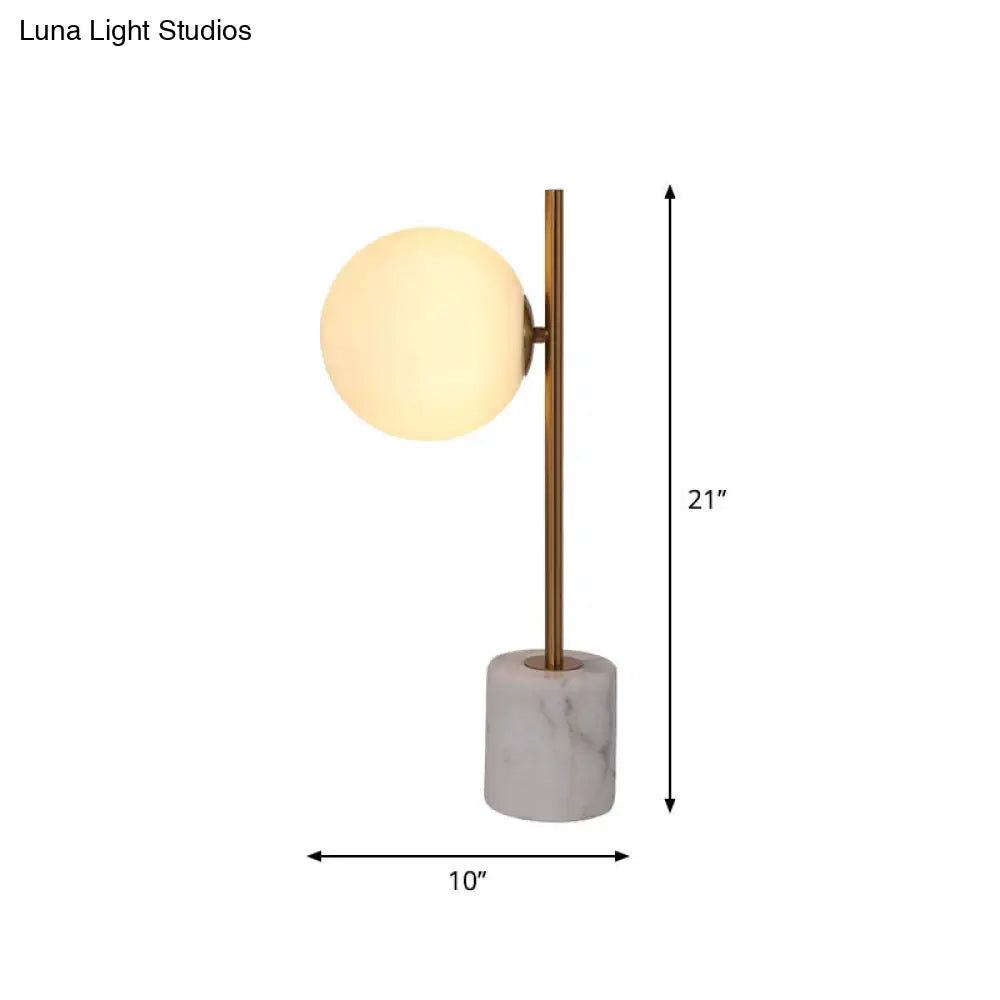 Colette - Lámpara de noche esférica de cristal blanco con poste de latón y base de mármol