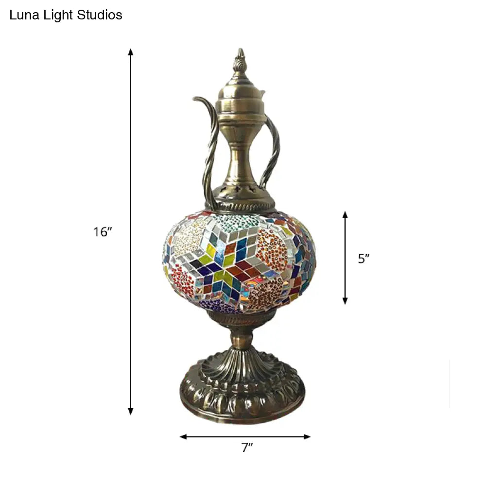Lámpara de escritorio pequeña antigua - Esfera de cristal blanco/rojo/naranja - Iluminación de trabajo con 1 bombilla y base metálica para sala de estar/hogar