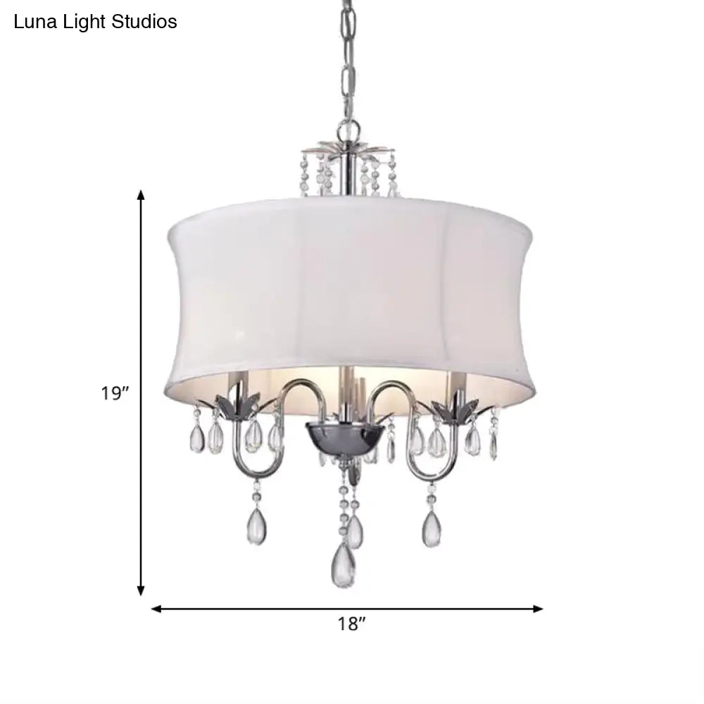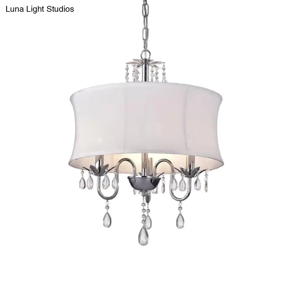 Lámpara de araña redonda blanca contemporánea con gotas de cristal - Lámpara colgante de salón de 3 luces