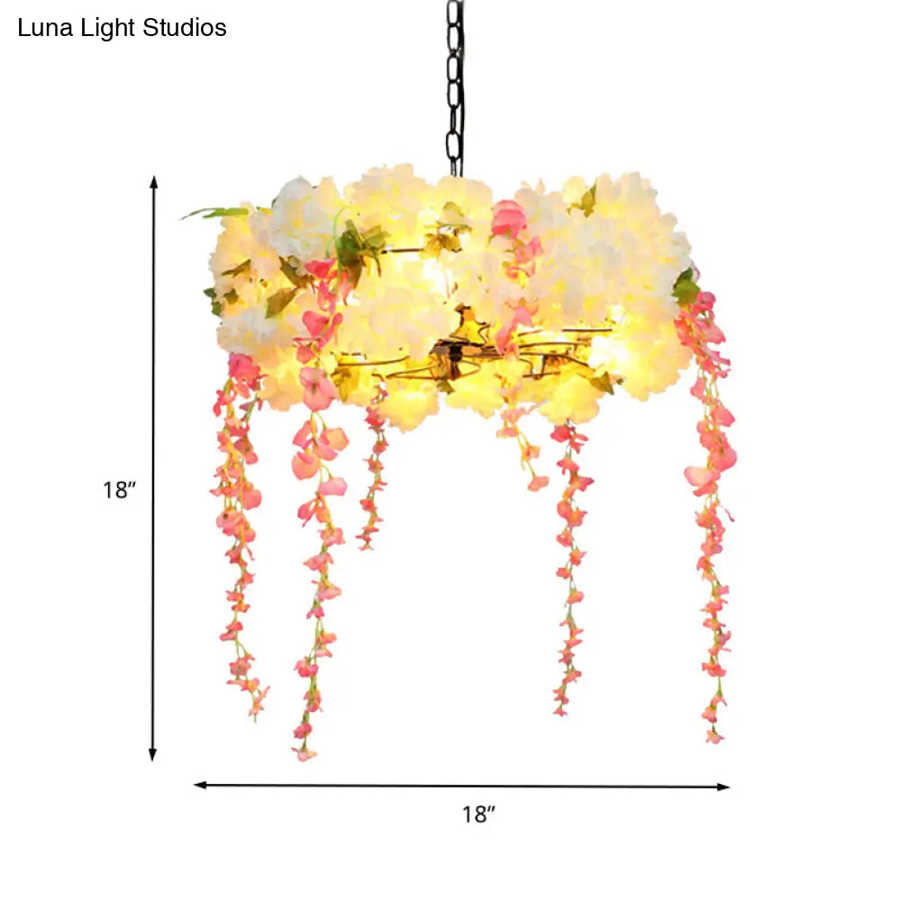 Industrial 5-Head LED Flower Metal Chandelier Light - 18" / 21.5" Width, White, Perfect for Restaurants