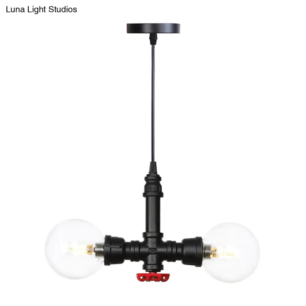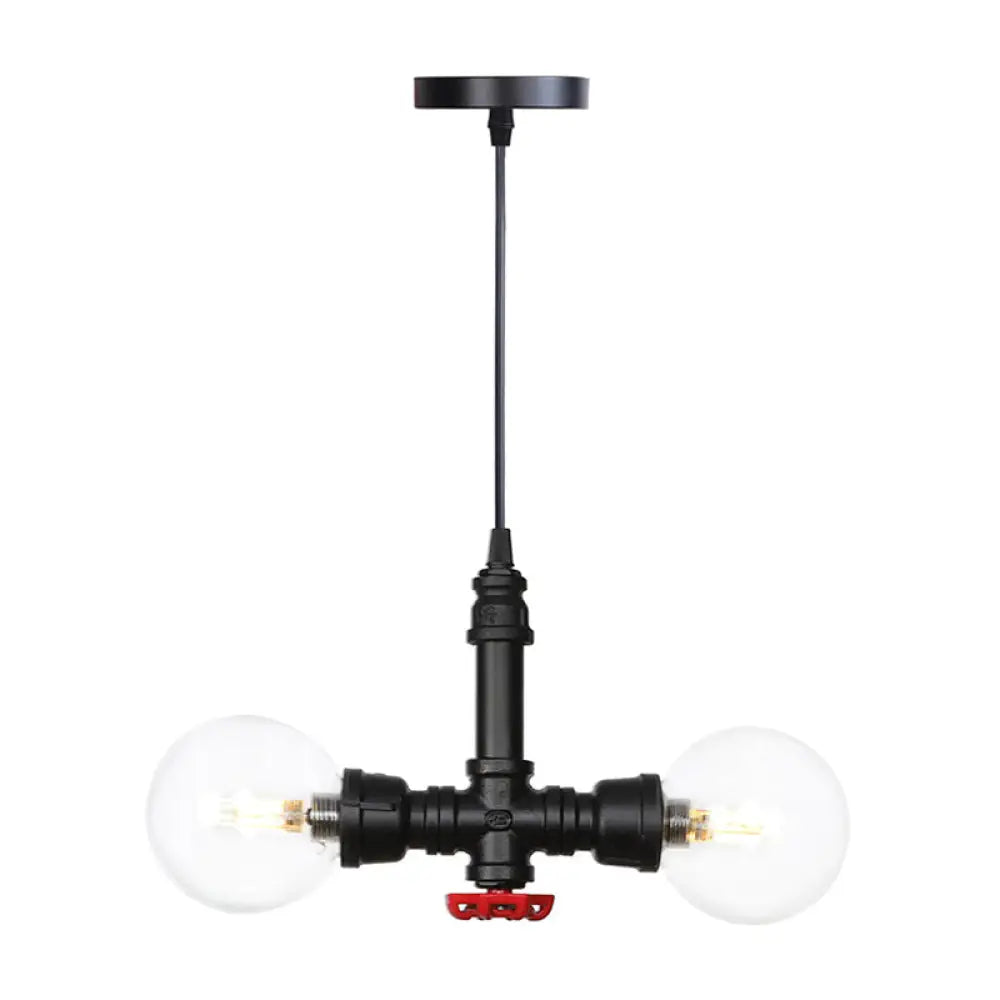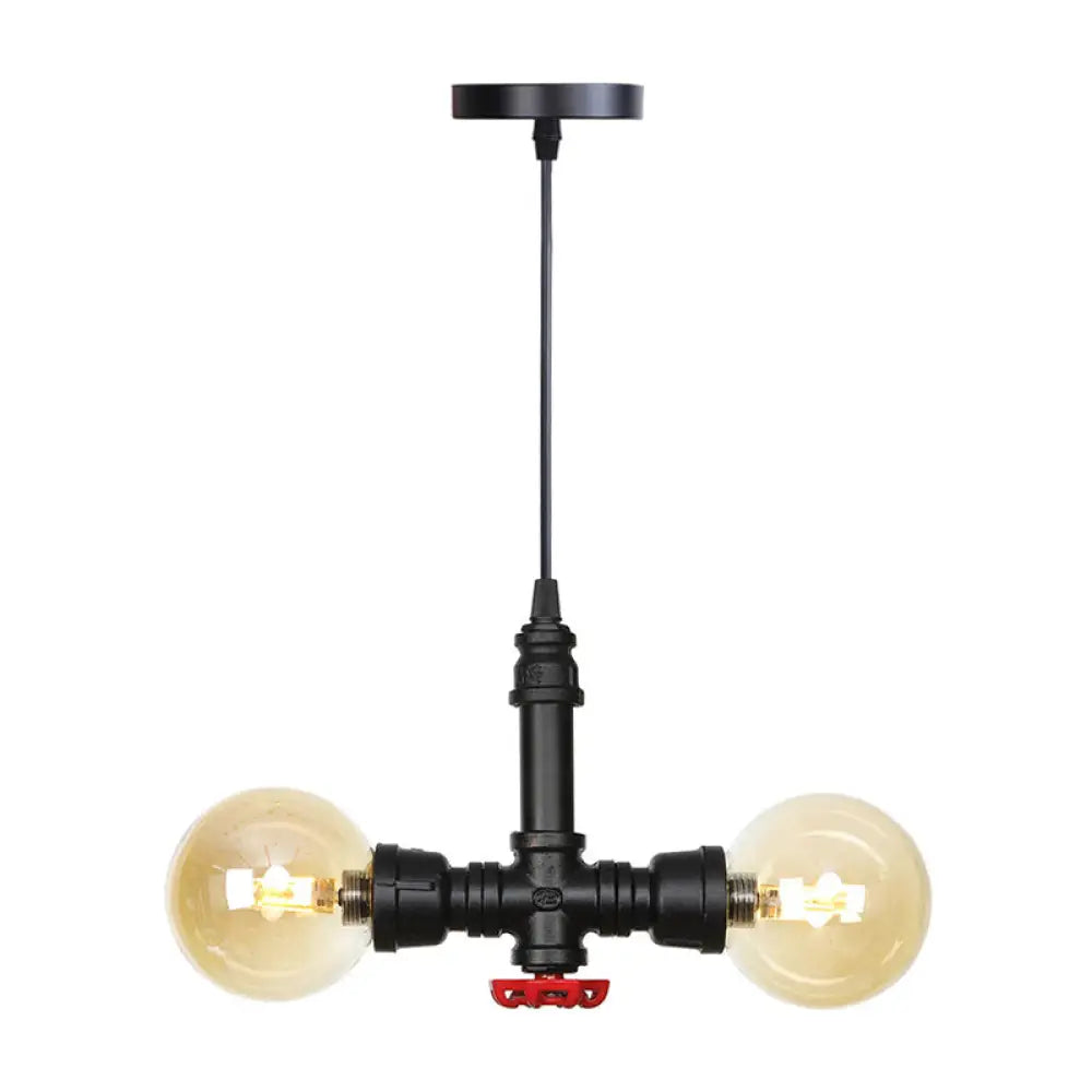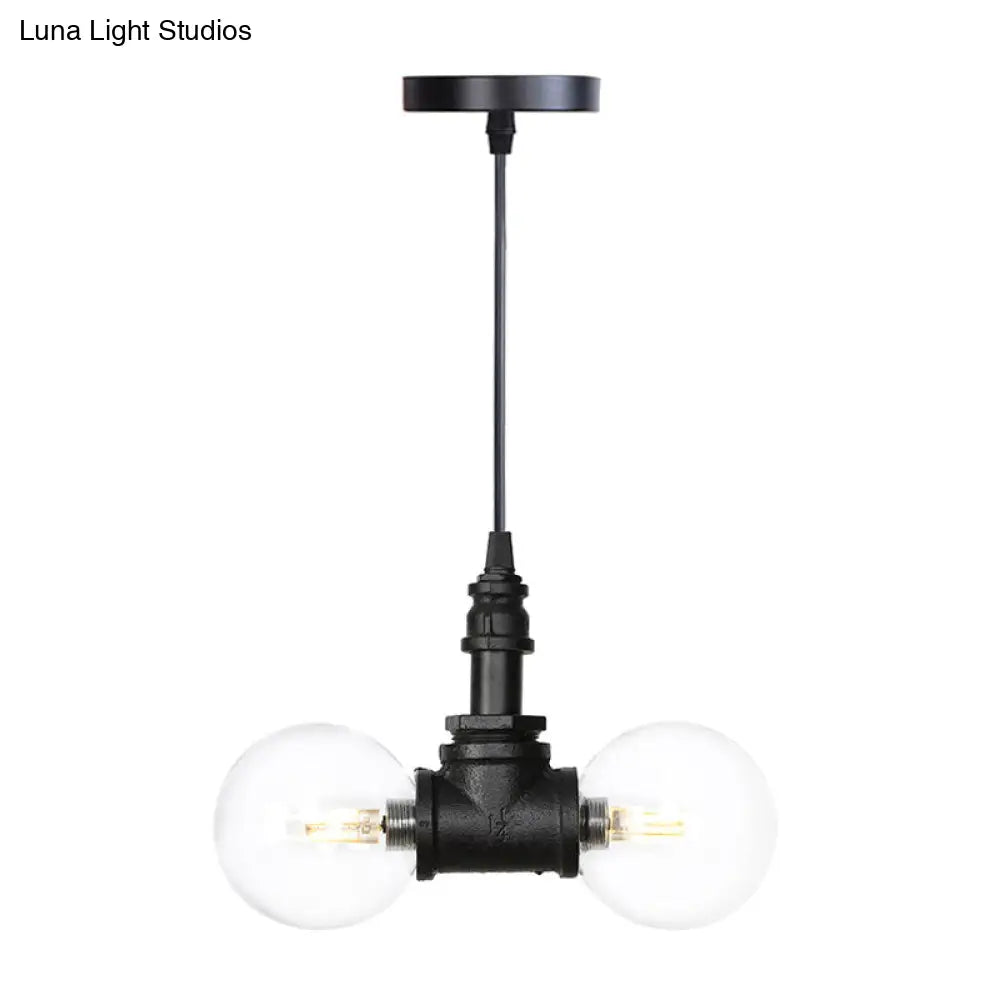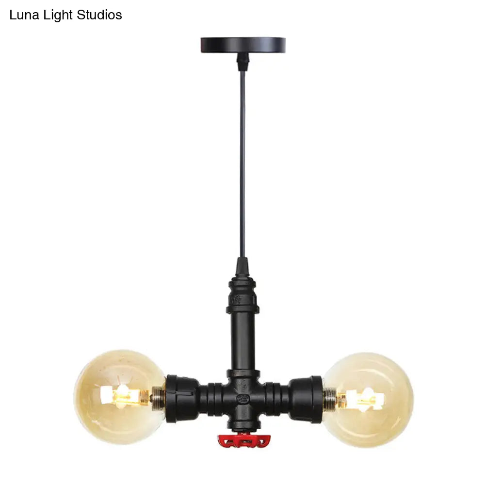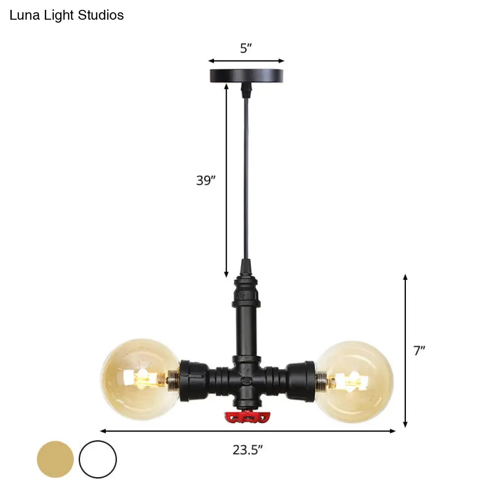 Vintage Glass Pendant Chandelier with Sphere Amber/Clear Bulbs - Black Fixture
