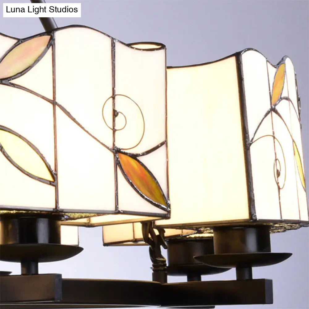 Stained Glass Chandelier: Traditional 2-Tier Leaf Suspension Light with Metal Chain in Black Finish