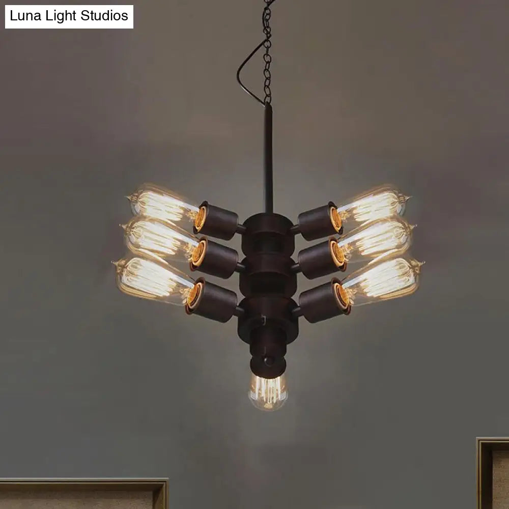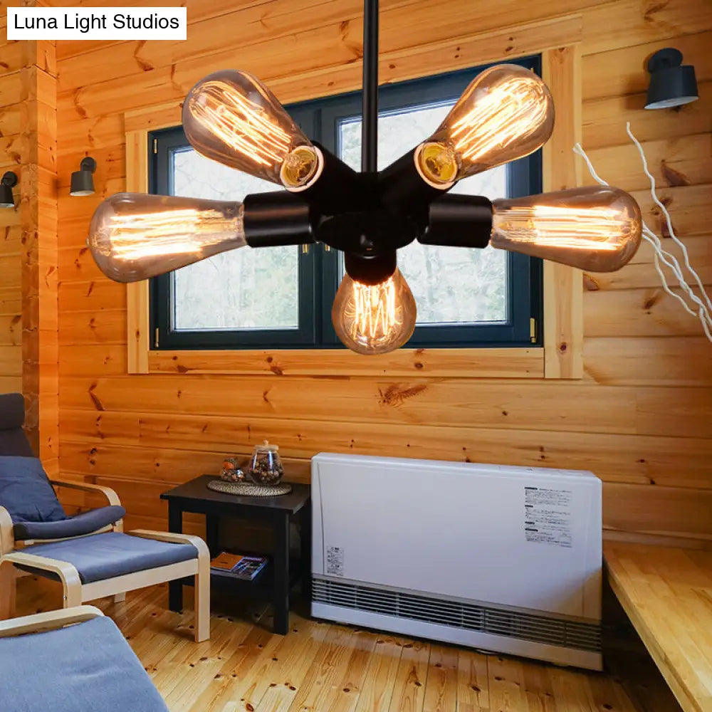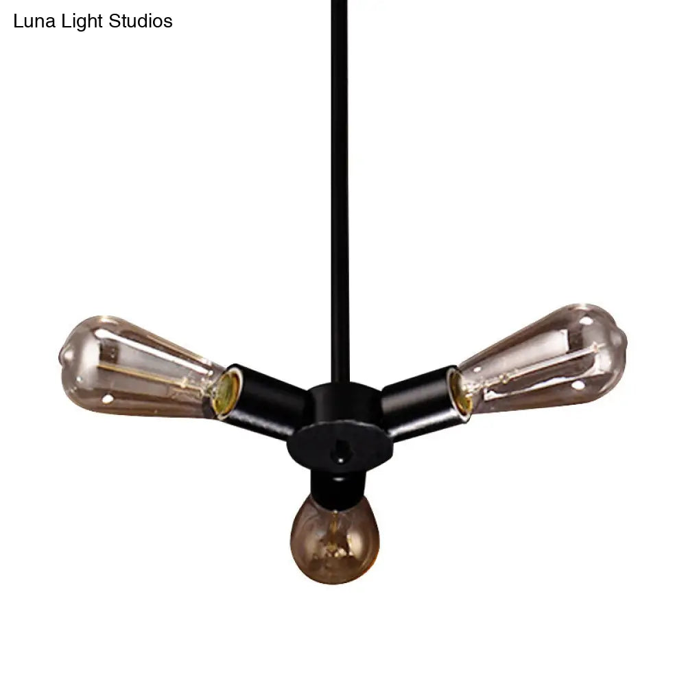 Vintage Black Finish Metal Bare Bulb Chandelier with Hanging Rod - 3/4/5 Lights for Bar
