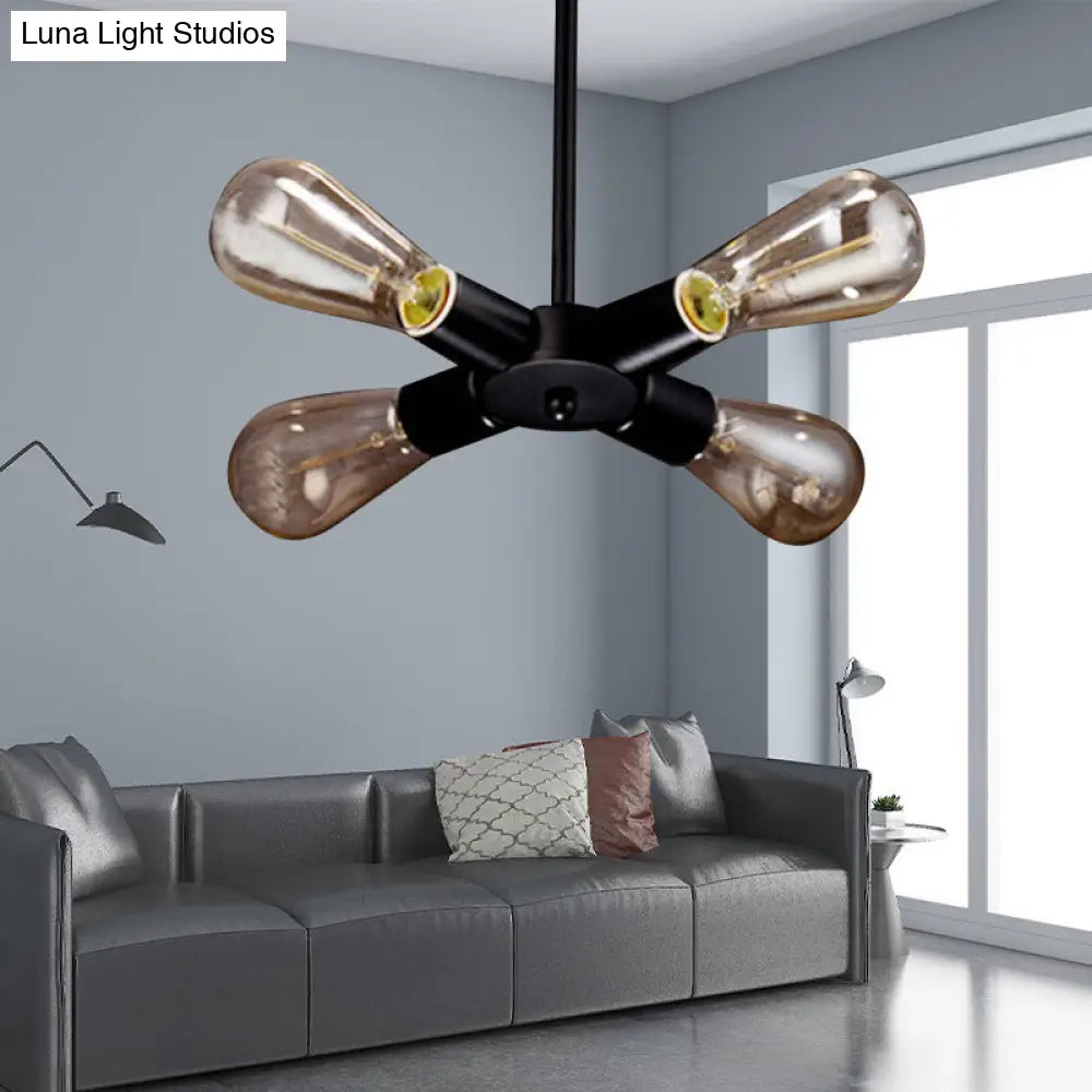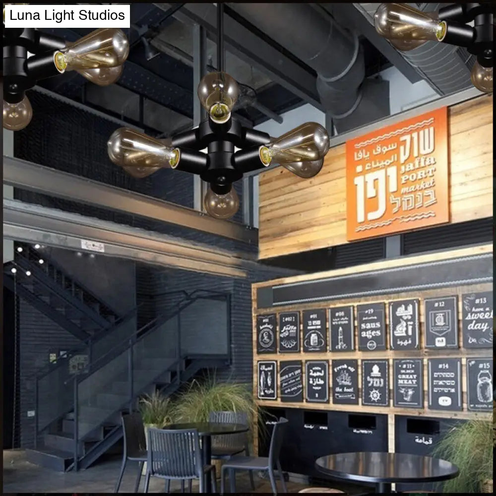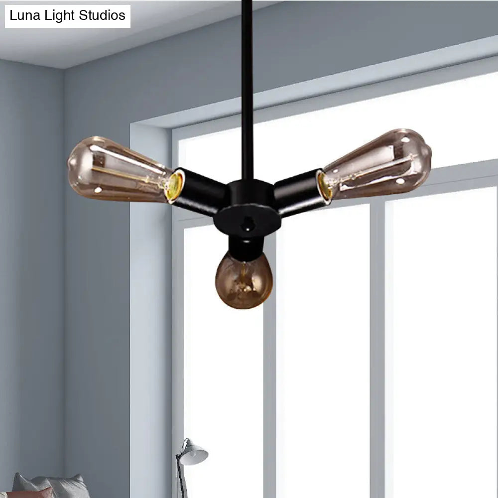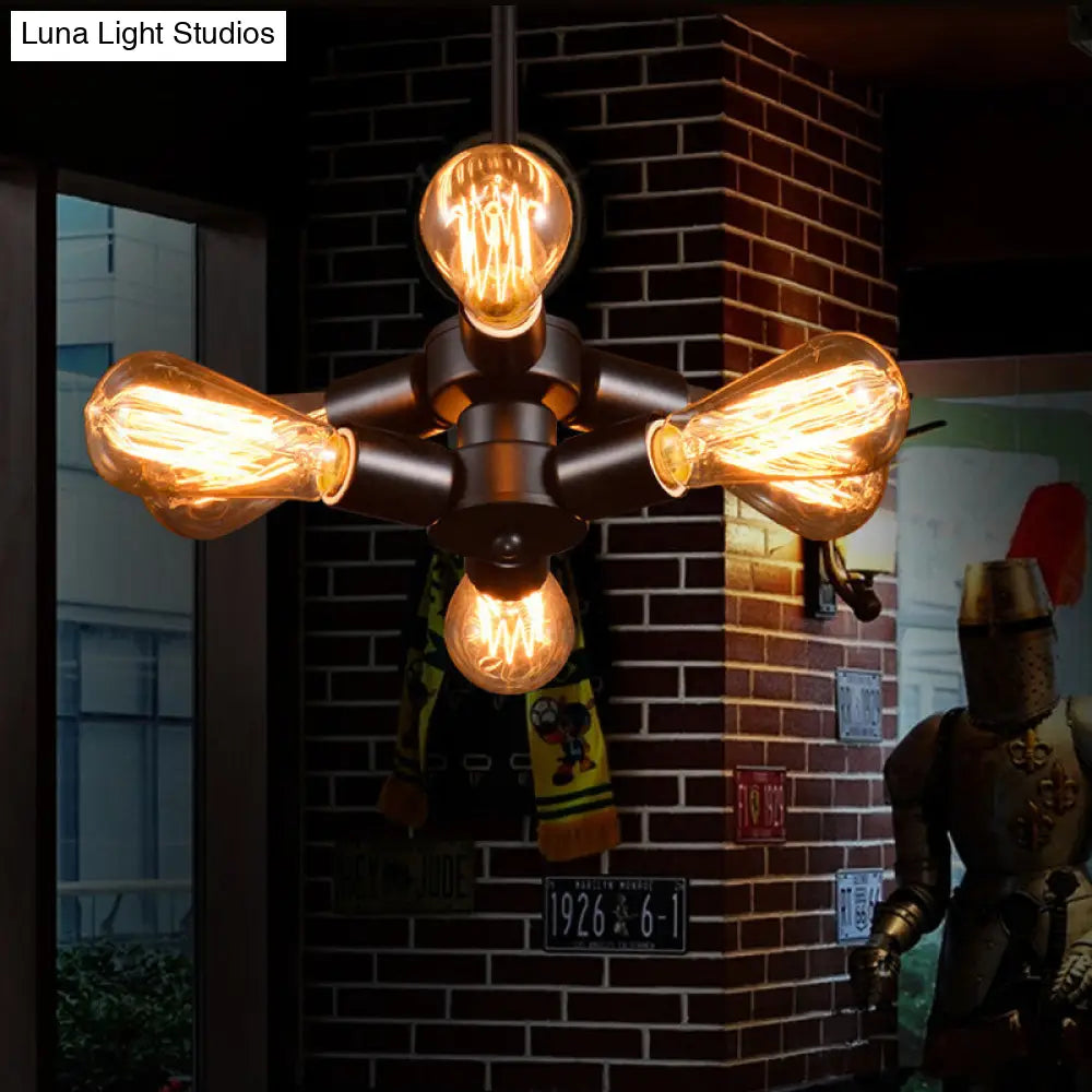 Vintage Black Finish Metal Bare Bulb Chandelier with Hanging Rod - 3/4/5 Lights for Bar