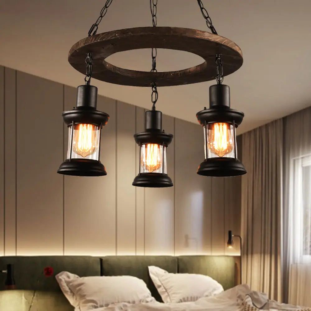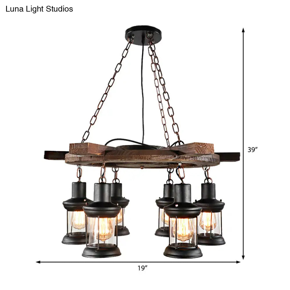 Industrial Clear Glass Lantern Shade Chandelier Pendant Light with 3/6 Bulbs for Dining Room Ceiling in Black