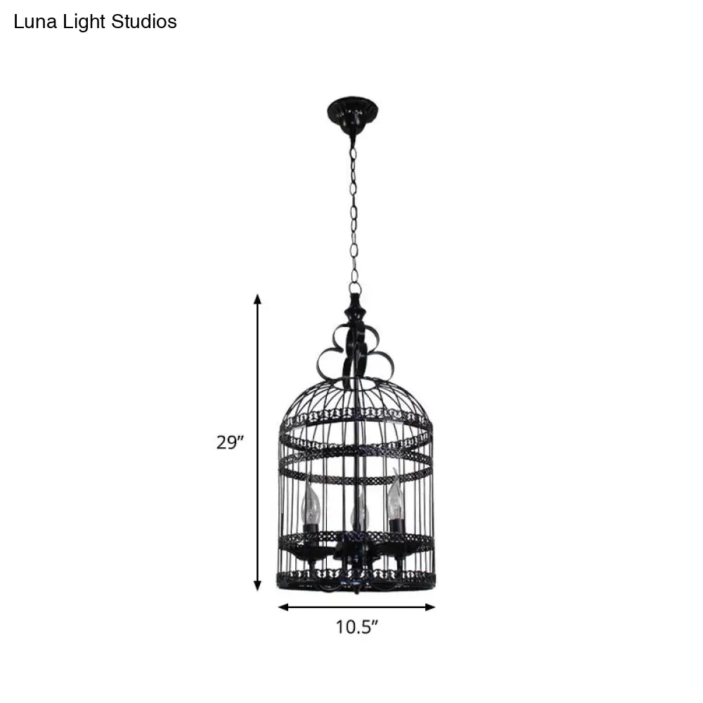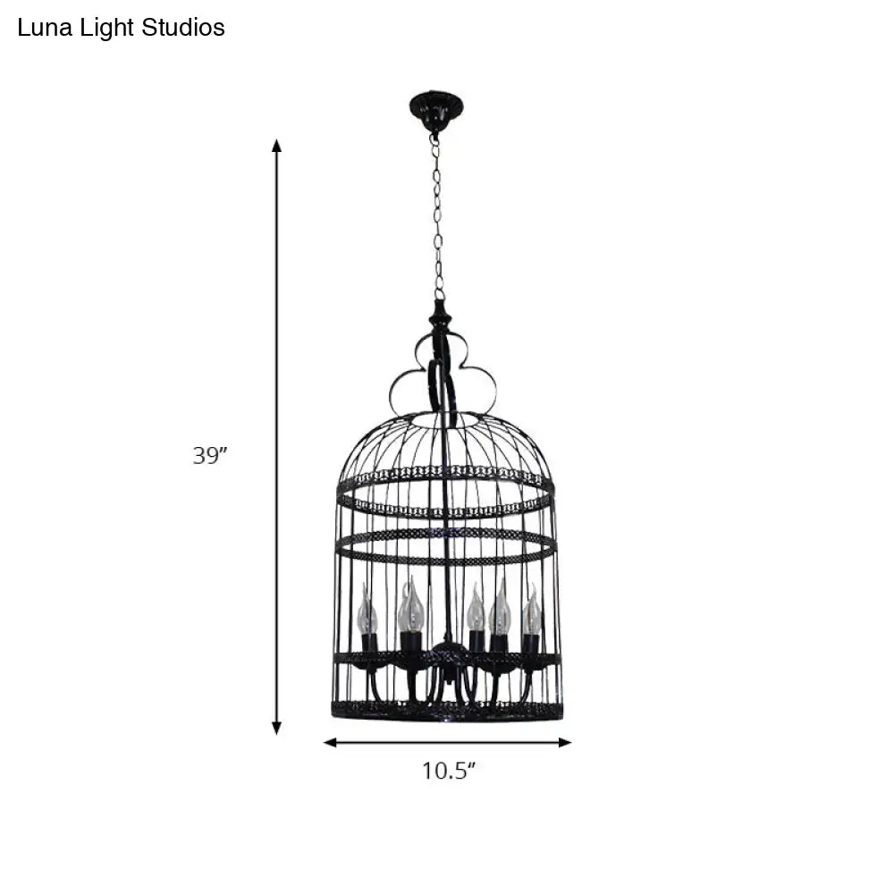 Industrial Style Bird Cage Hanging Light with Candle - Black Metallic Chandelier Lamp for Bedroom - 3/6 Bulbs