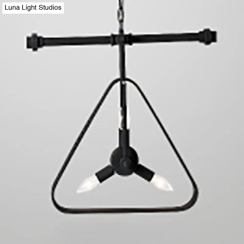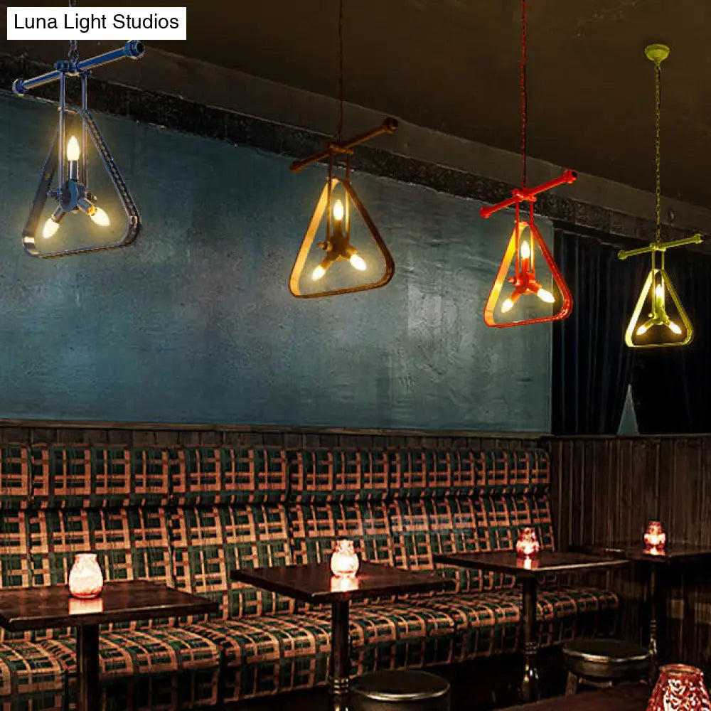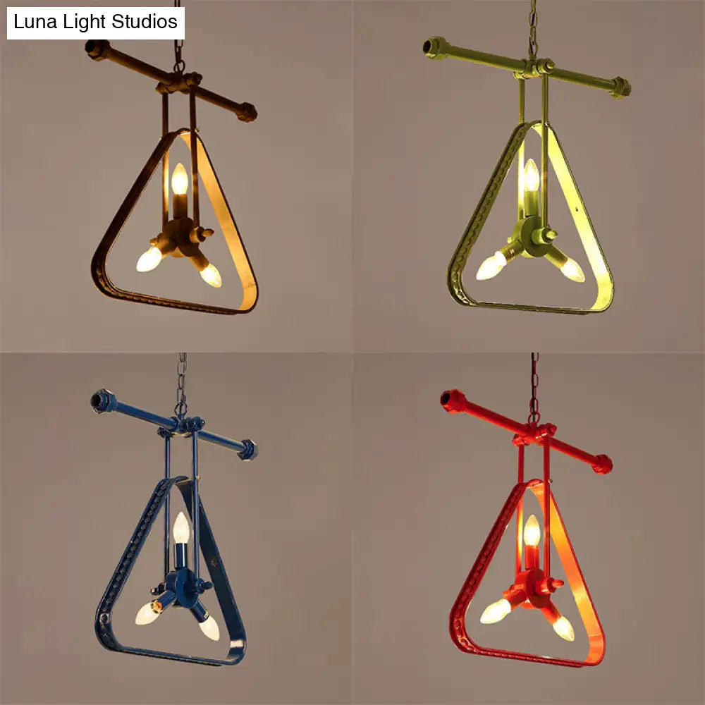 Vintage Style Wire Frame Chandelier Lamp - Black/Red Metallic - 3 Heads Triangle - Hanging Ceiling Fixture