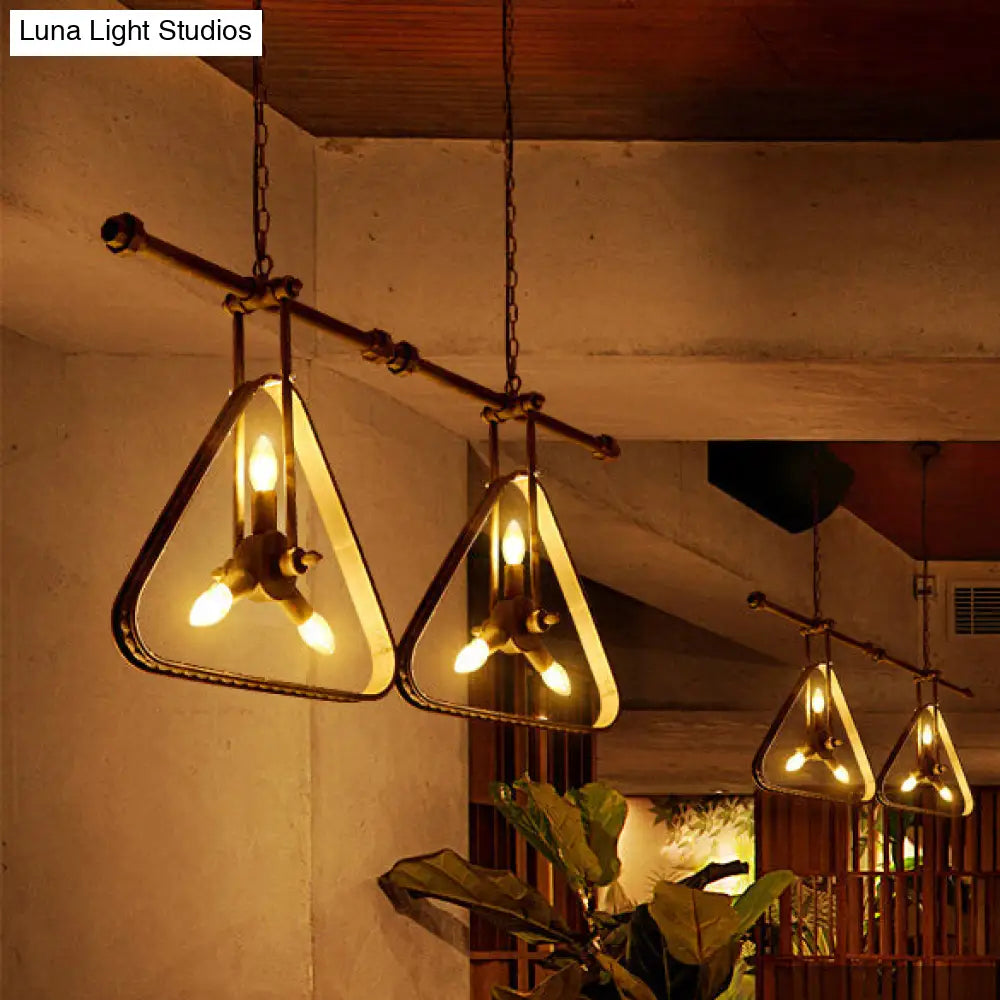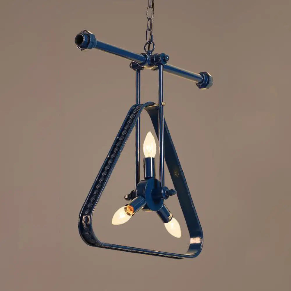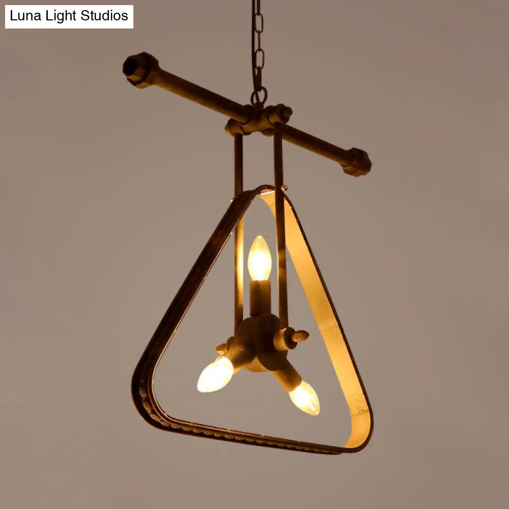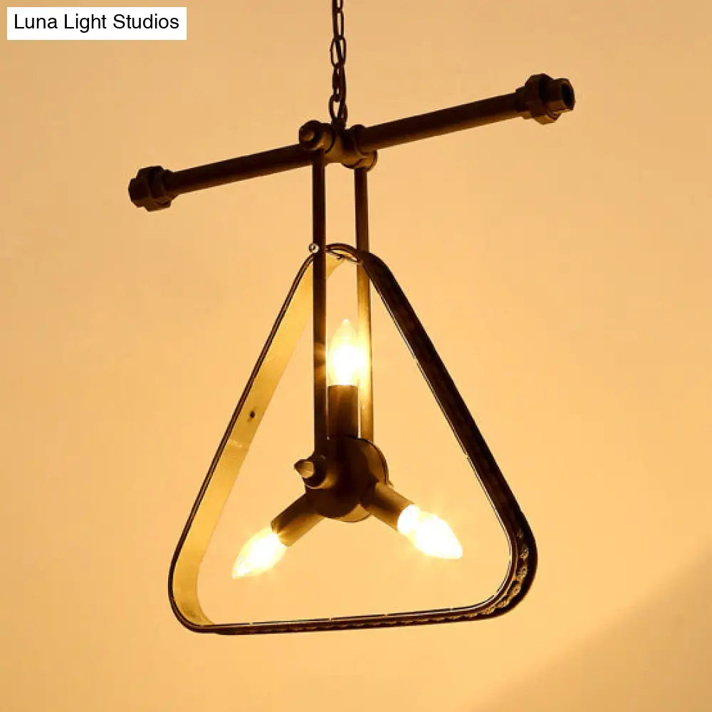 Vintage Style Wire Frame Chandelier Lamp - Black/Red Metallic - 3 Heads Triangle - Hanging Ceiling Fixture