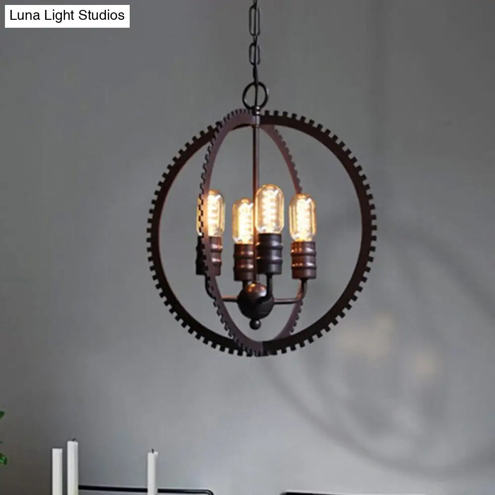 Industrial Metal Hanging Chandelier with 4-Lights, Globe Shade and Bronze Finish for Dining Room