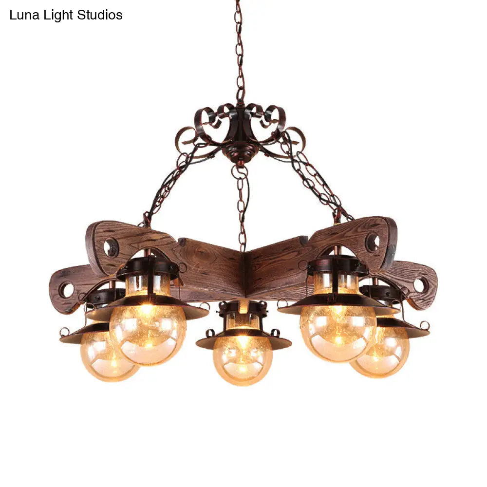 Cognac Seeded Glass Chandelier with Rustic Ball Pendant: 5/9 Lights Industrial Lighting