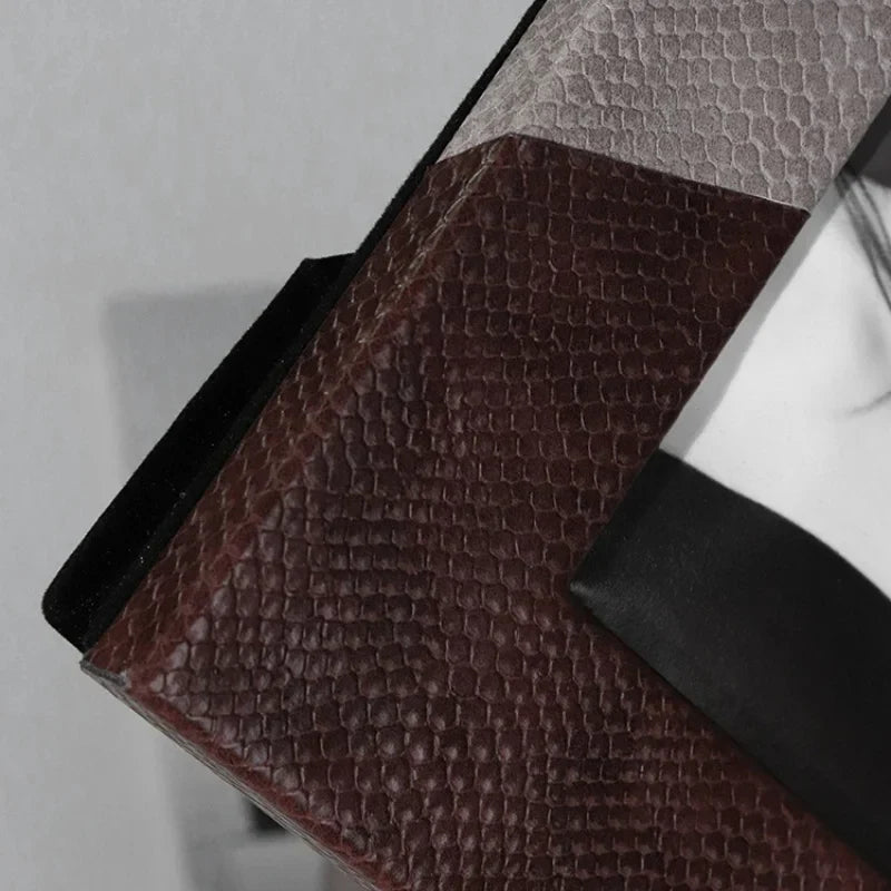 Introducing the Leather Splice Desktop Photo Frame - a sophisticated addition to your home decor and display accessory collection. Crafted with the finest quality leather, this modern-style photo frame exudes elegance and charm.