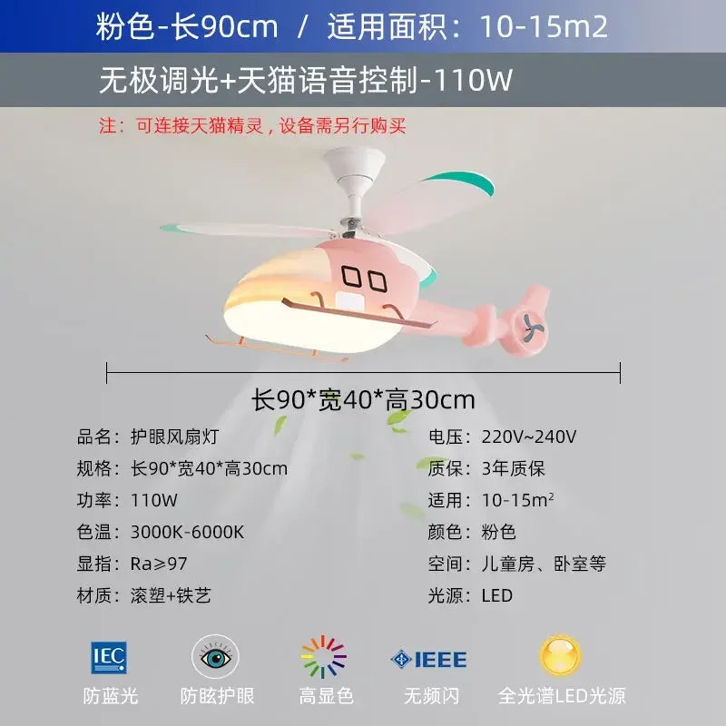 DecorBites™ Helicopter Aircraft Ceiling Fan Children's Chandelier Blue Pink Light Kids' Room