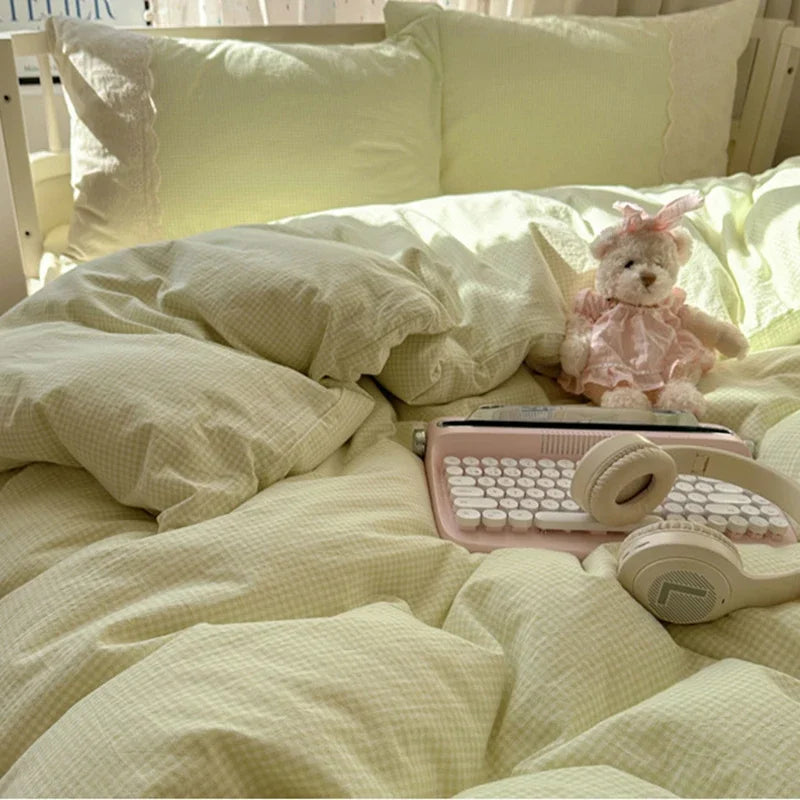 DecorBites™ Lace Duvet Cover Bedding Set 4Pcs French Washed Cotton for Single Double Bed