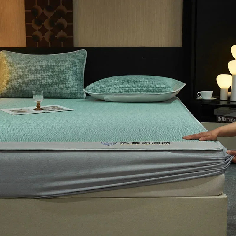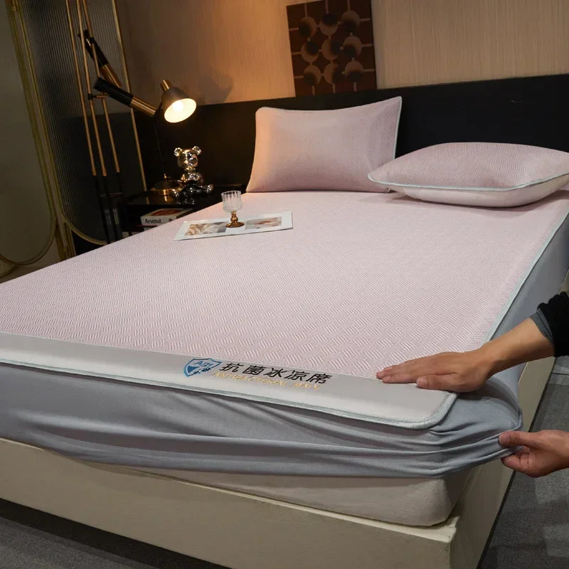Introducing the Decorbites Antibacterial Ice Silky Soft Fitted Sheet Set, a luxurious addition to your bedroom decor.