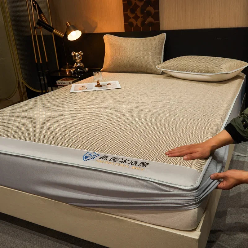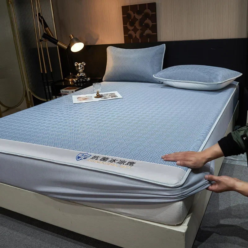 DecorBites™ Antibacterial Ice Silky Soft Fitted Sheet Set, Striped Geometric Pattern, Breathable Mattress Cover