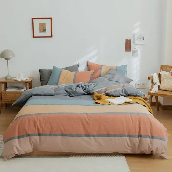 DecorBites™ Japanese Style Cotton Printed 4Pcs Bedding Set with Double-Sided Design