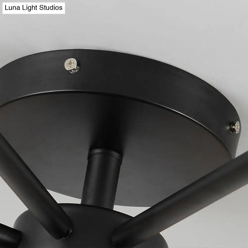 Retro Radial Iron Pendant Light with 8 Bulbs for Barbershop in Black