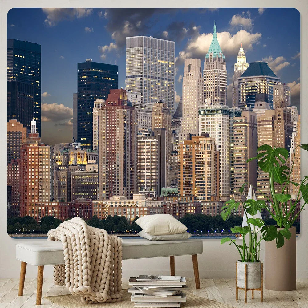 DecorBites™ City Night Bohemian Decor Tapestry Hippie Sofa Blanket Art