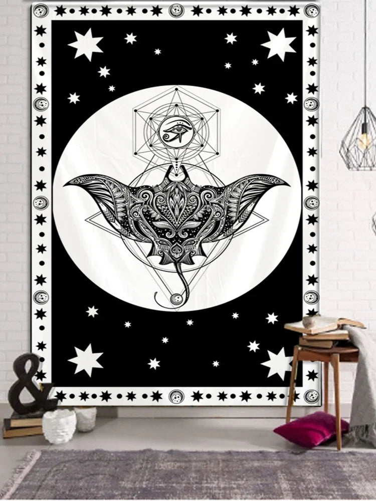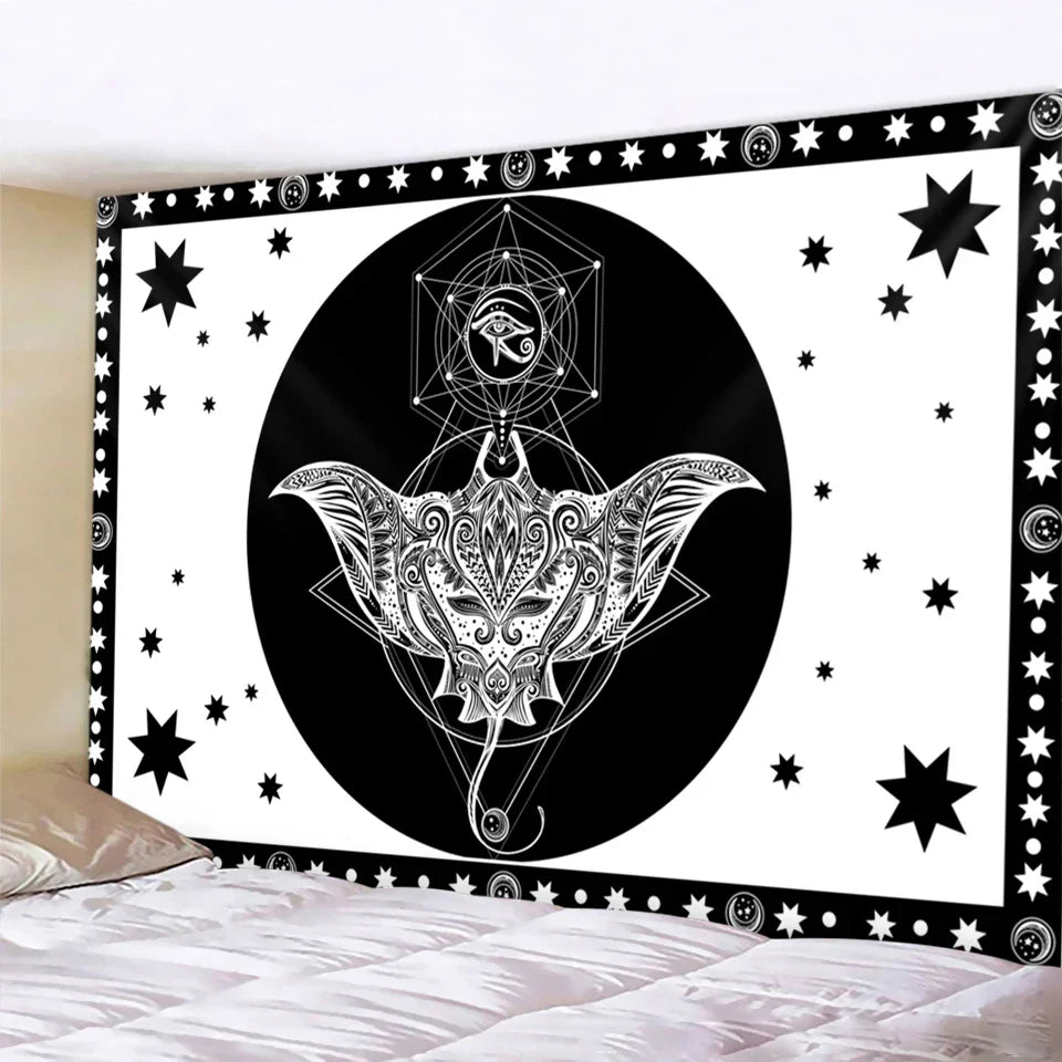 DecorBites™ Black & White Tarot Witchcraft Tapestry | Bohemian Hippie Mandala Wall Decor