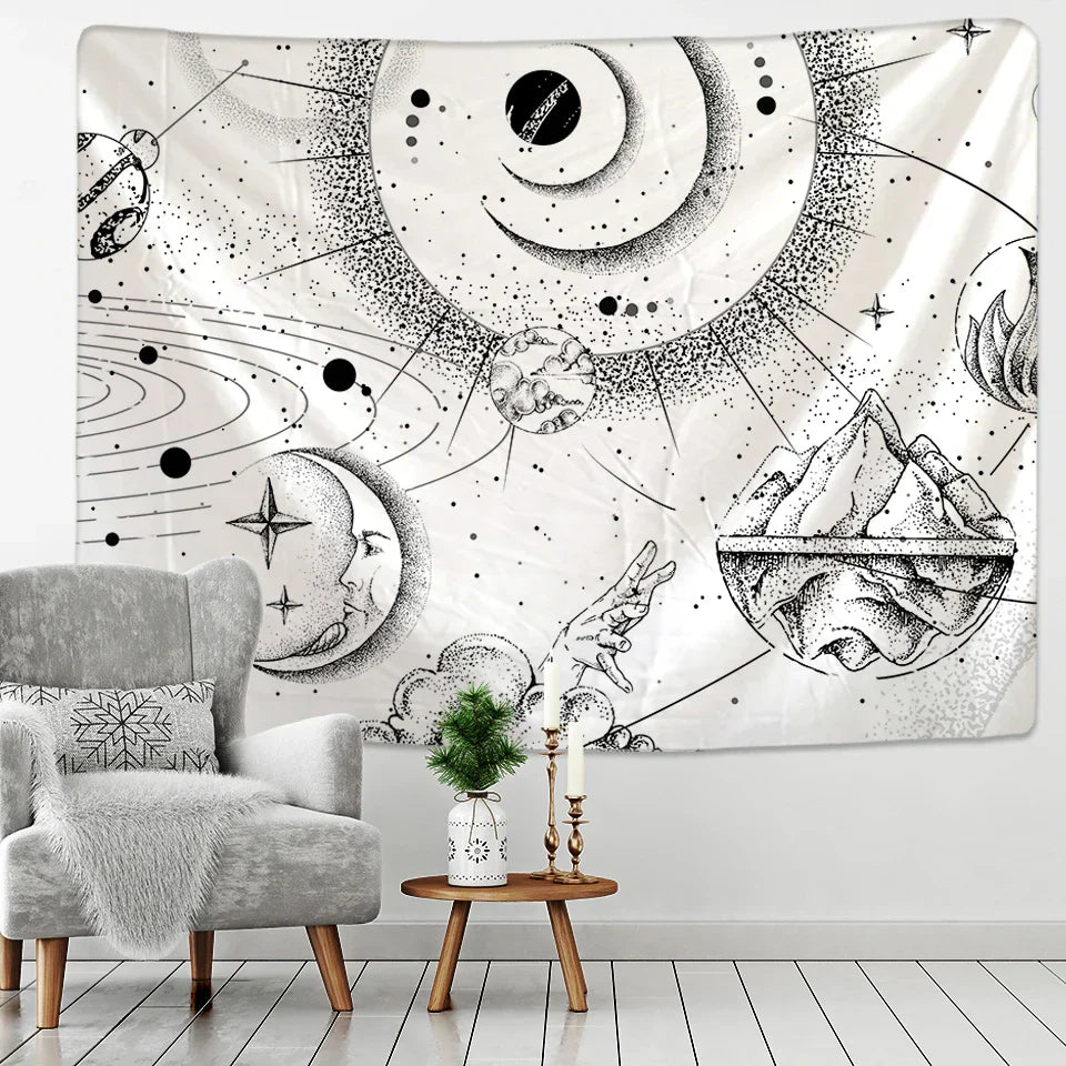 Transform your living space with the Decorbites Black & White Stars Mandala Tapestry, a stunning piece of home decor that brings a touch of elegance and style to any room. Made from 100% high-quality polyester, this tapestry is designed with intricately woven black and white stars in a beautiful mandala pattern.