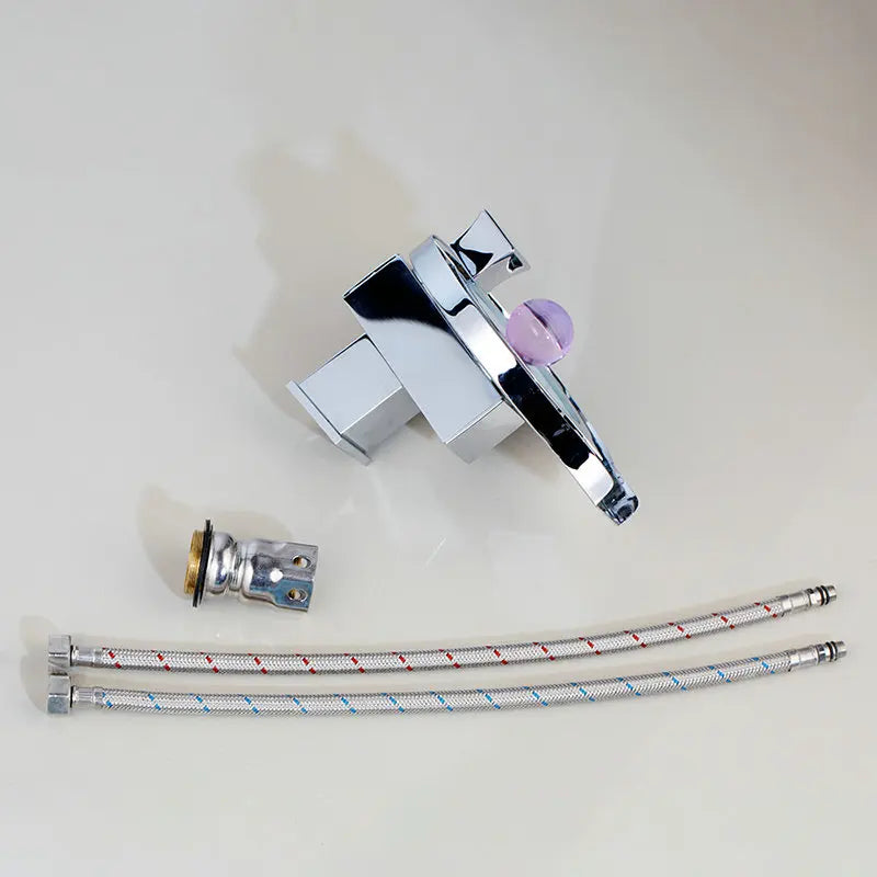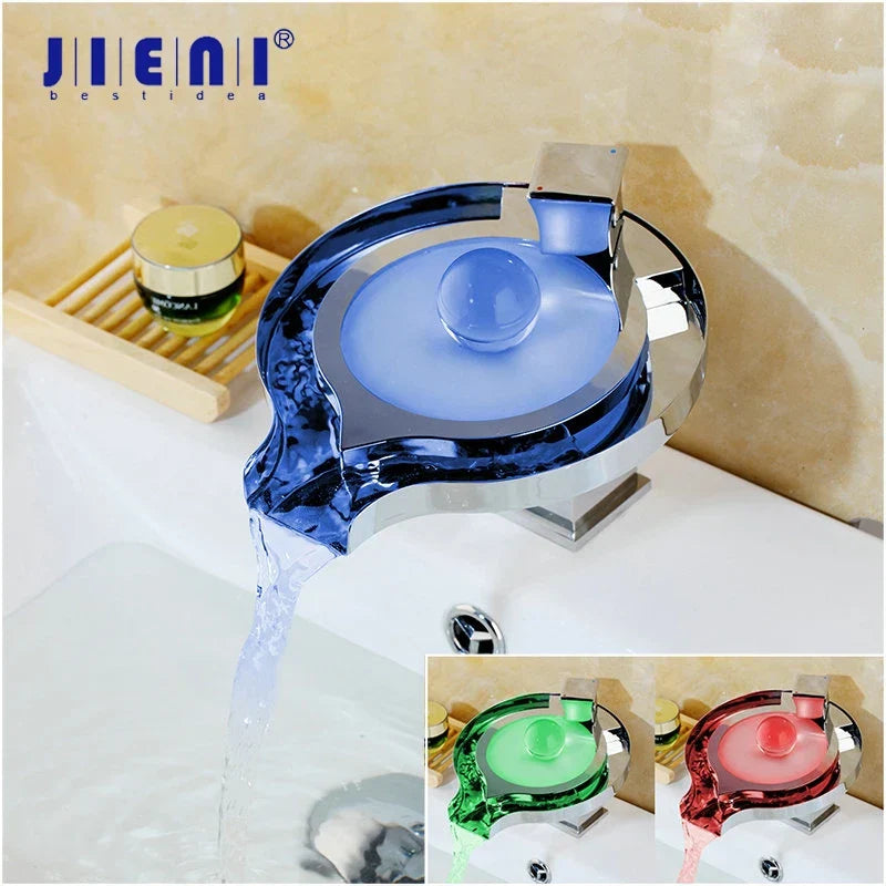 DecorBites™ Brass LED Waterfall Basin Faucet, Chrome/Black Mixer for Bathroom Sink