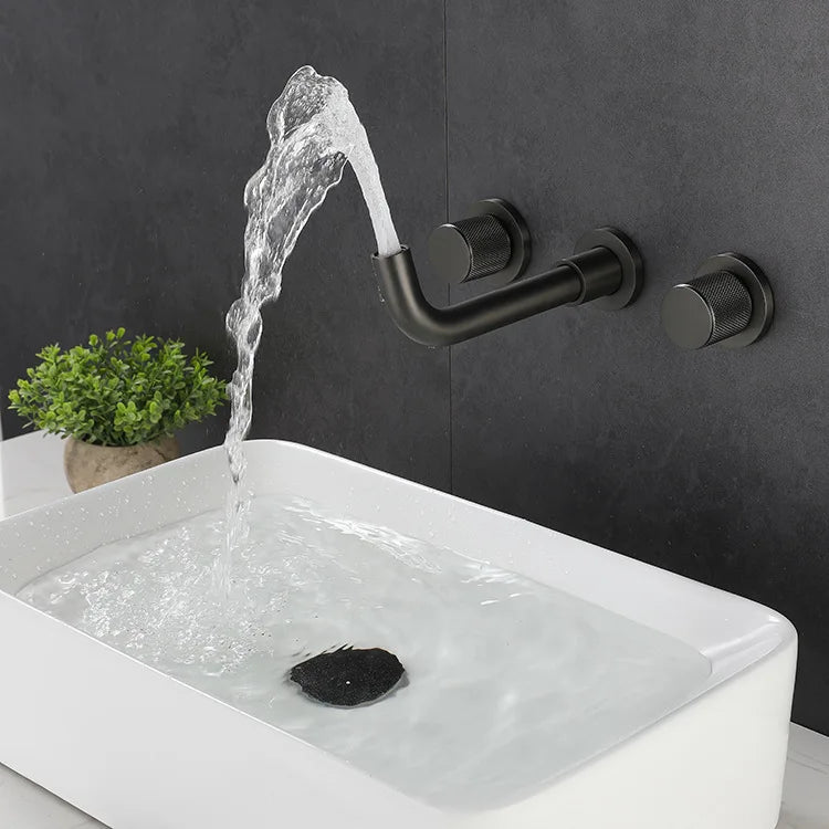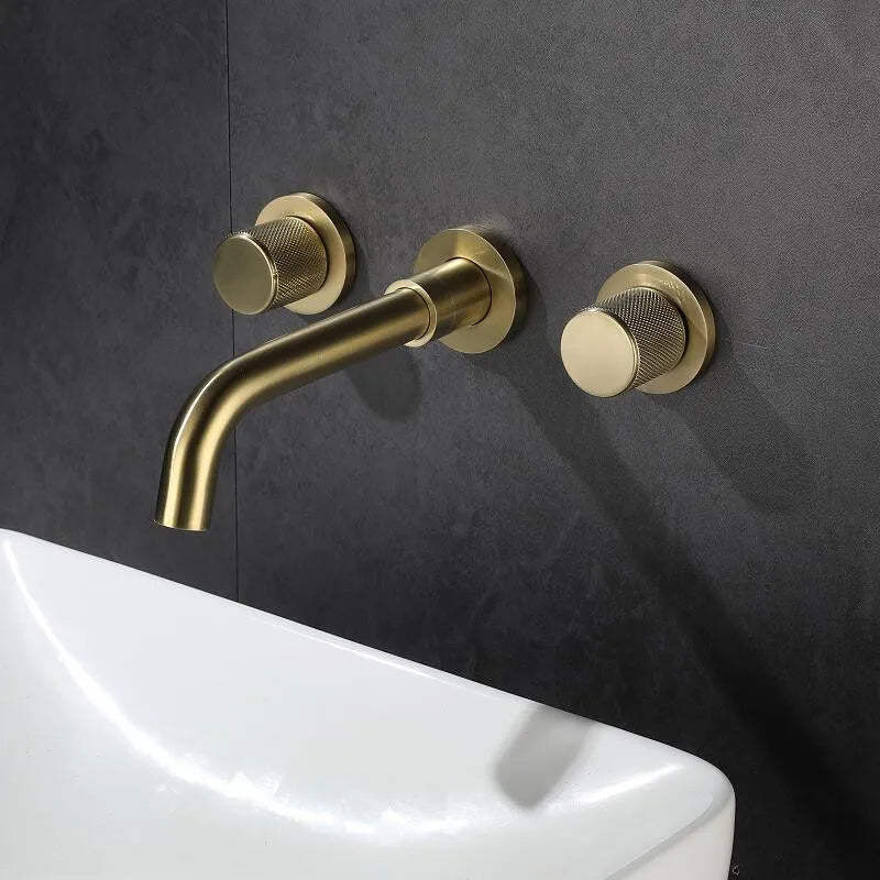 DecorBites™ Brushed Gold Basin Faucet: Single Handle Wall Mount Brass Mixer Tap, Cold/Hot Water