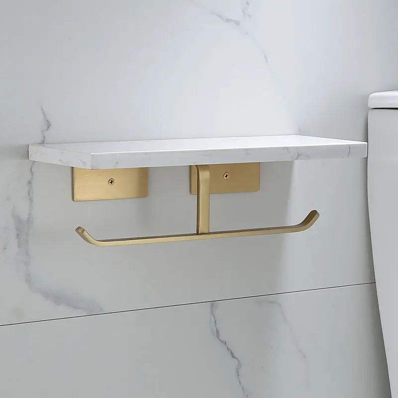 DecorBites™ Brass Marble Toilet Paper Holder Nordic Brushed Gold Bathroom Tissue Shelf