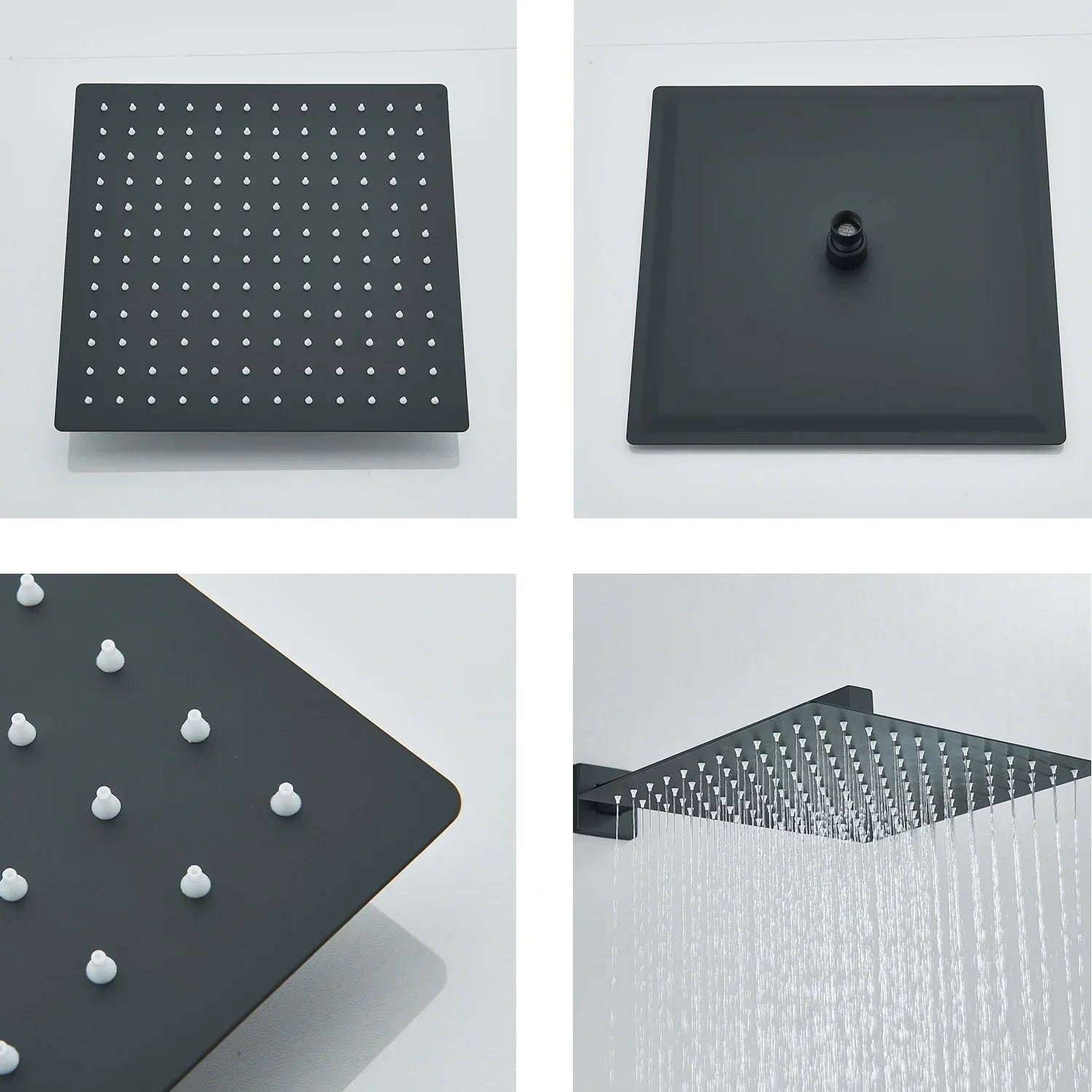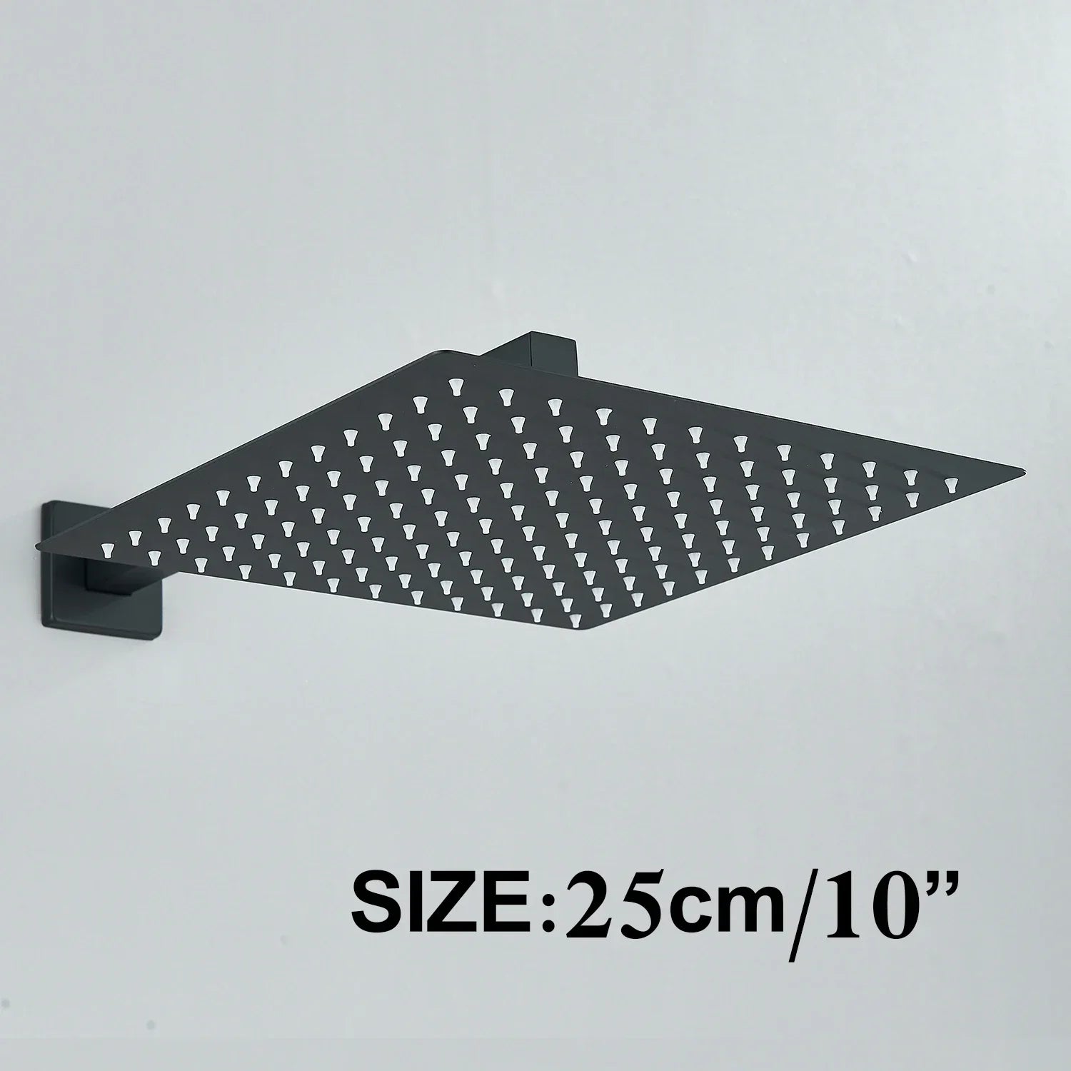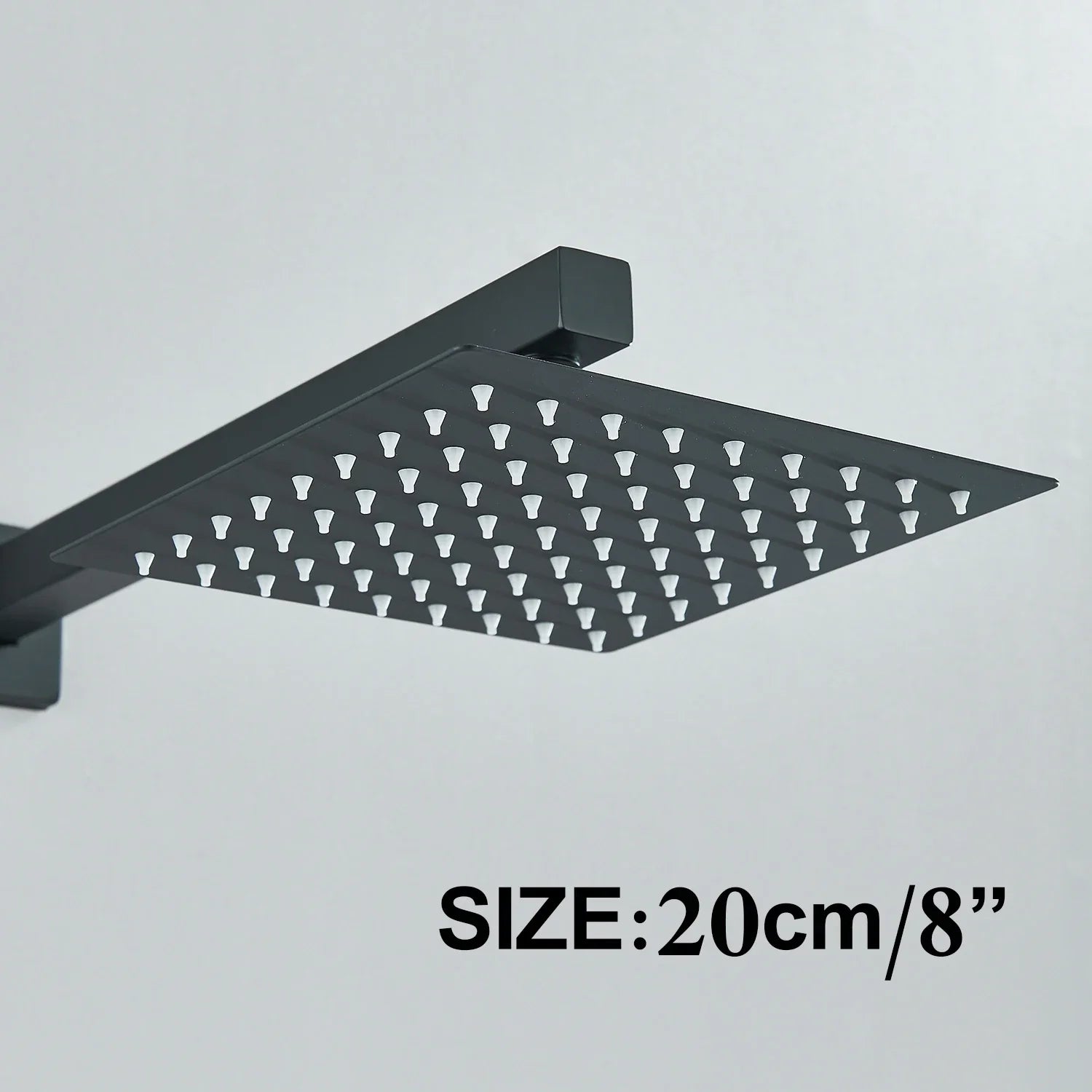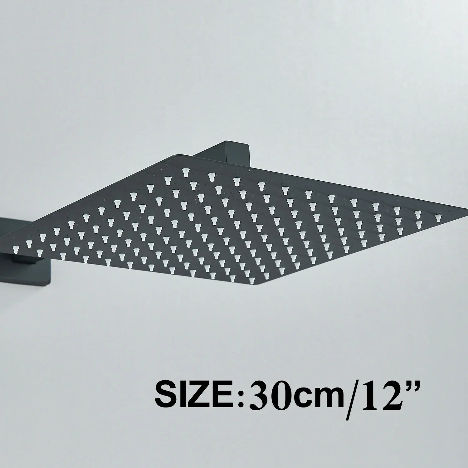 DecorBites™ 12" Matte Black Rainfall Shower Head Set with Shower Arm