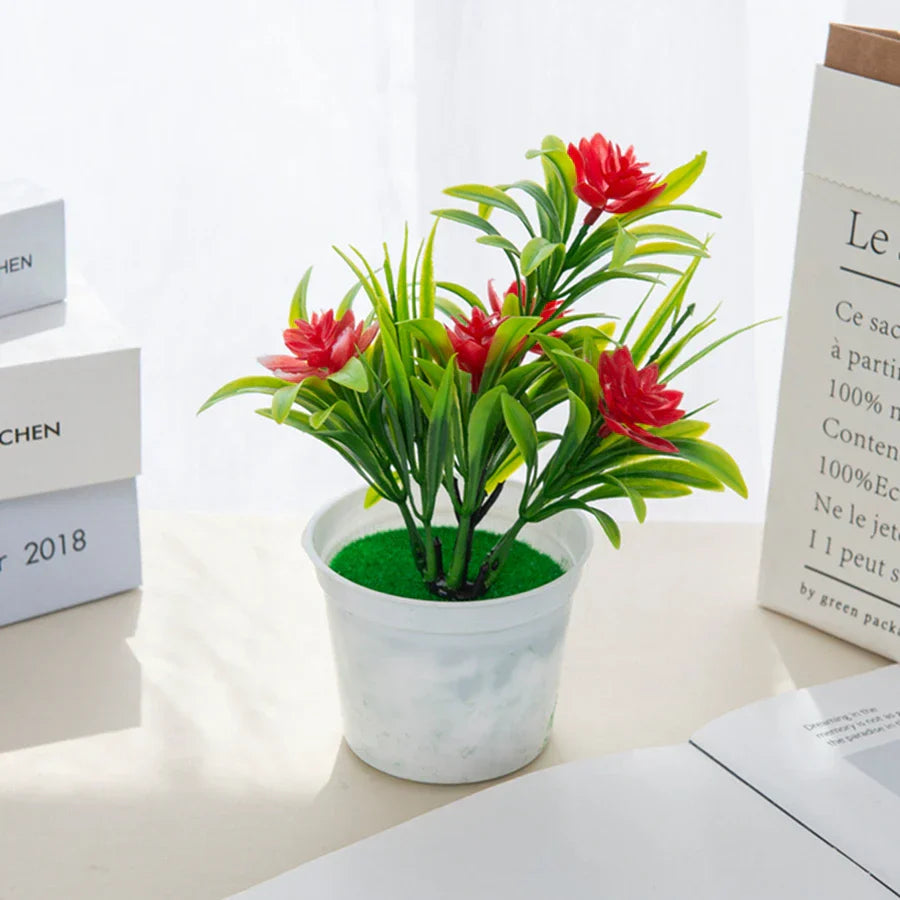 DecorBites™ Artificial Flowers Bonsai Vase Mini Potted Home Decor Wedding DIY Flowerpot