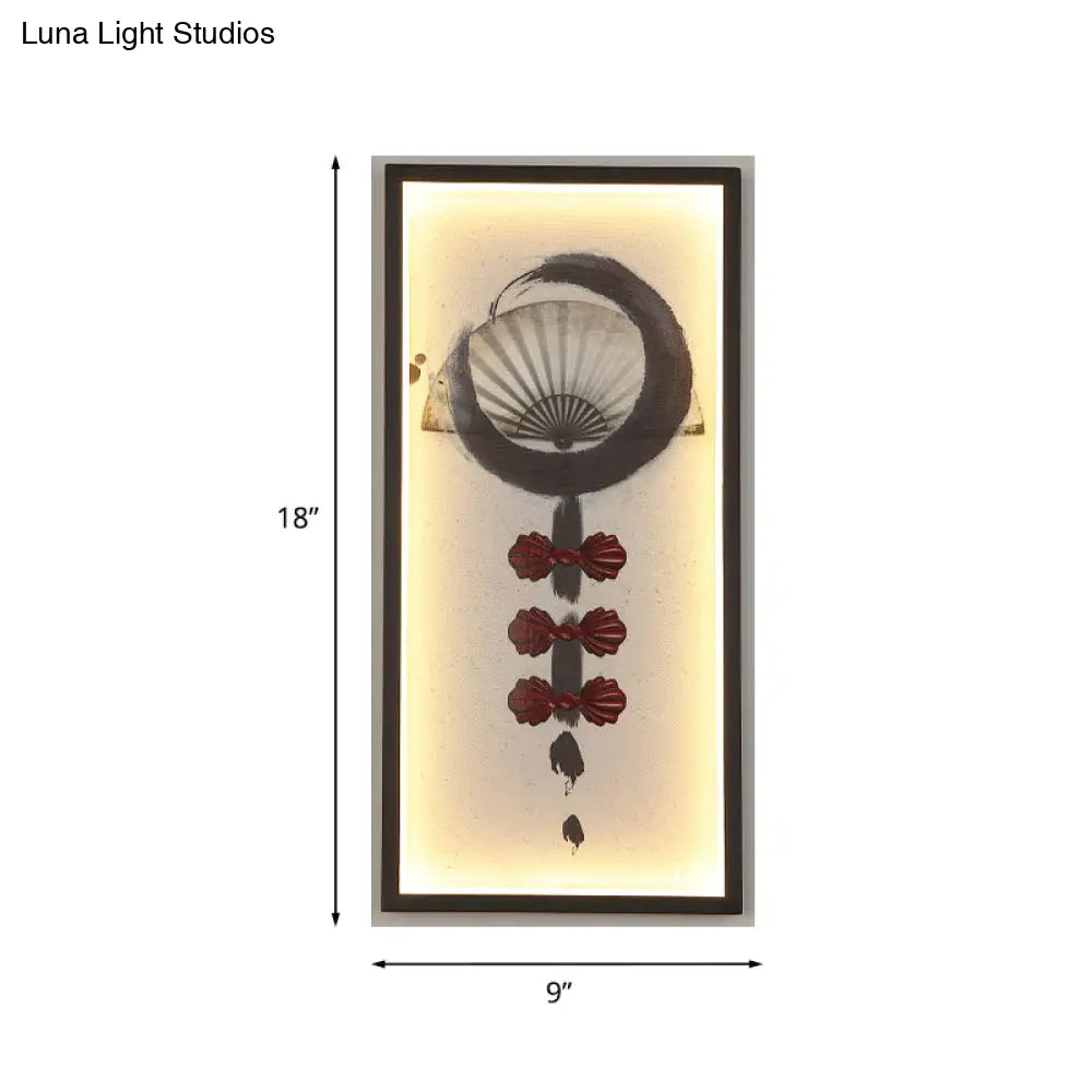 Black Chinese Style LED Wall Sconce with Abstract Living Room Wall Mural Light