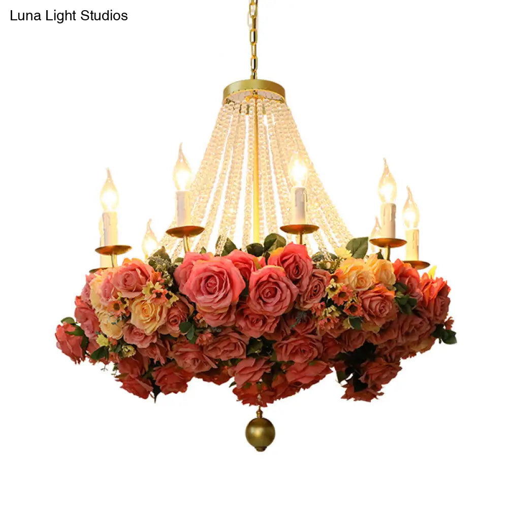 Vintage Rose Chandelier: 10-Bulb Metal Pendant Light in Pink - Ideal for Restaurants