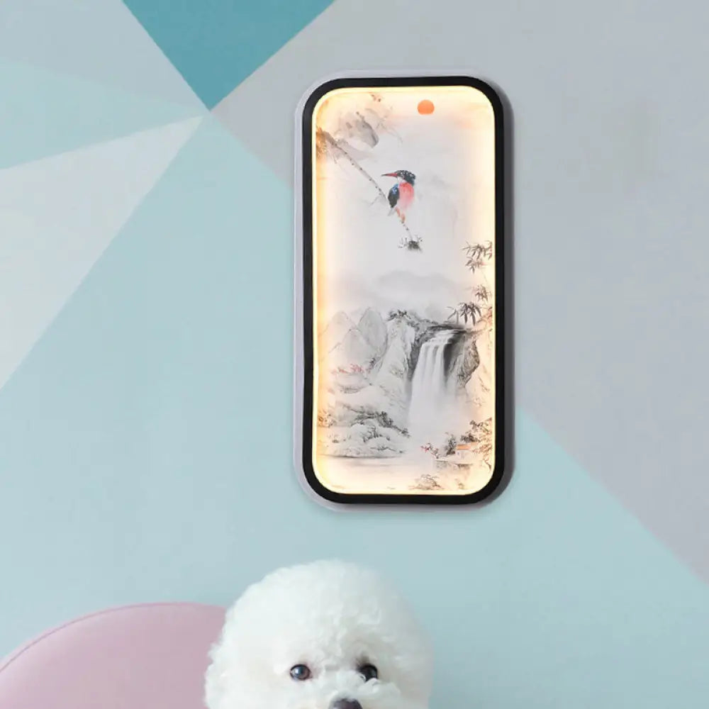 Black Wall Mount LED Sconce: Aluminum Asia Cascade Mural Light for Living Room