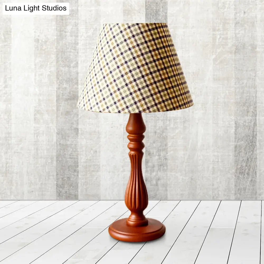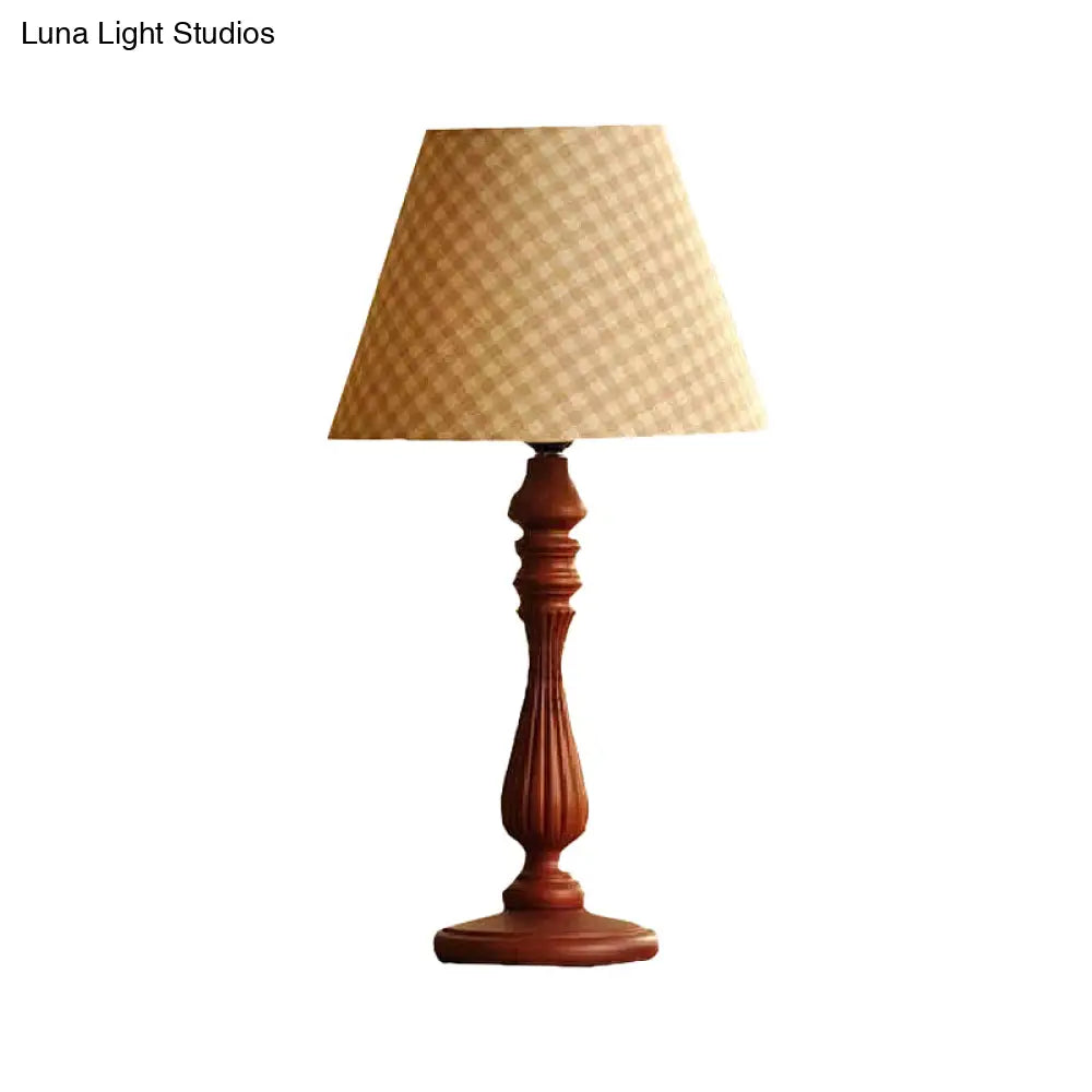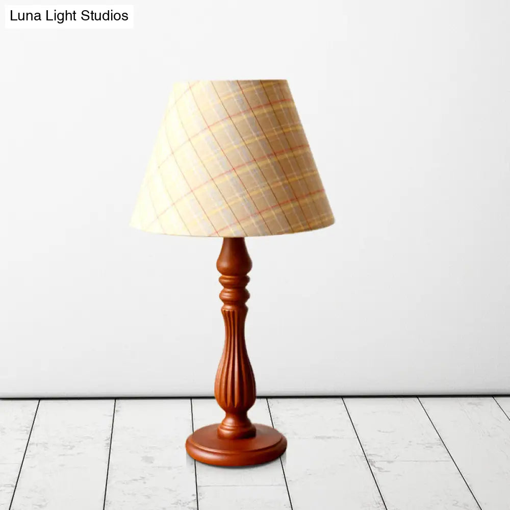 Barrel Shape Desk Lamp - Beige/Tan/Dark Blue - Traditional Fabric - Bedroom Reading Light with Wood Base