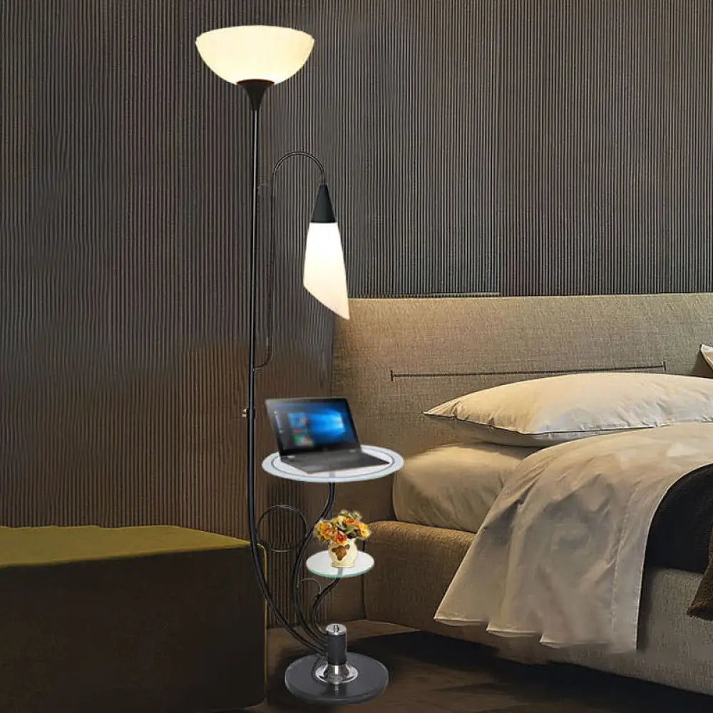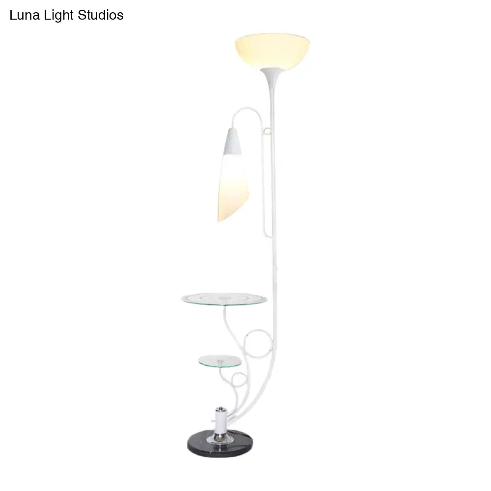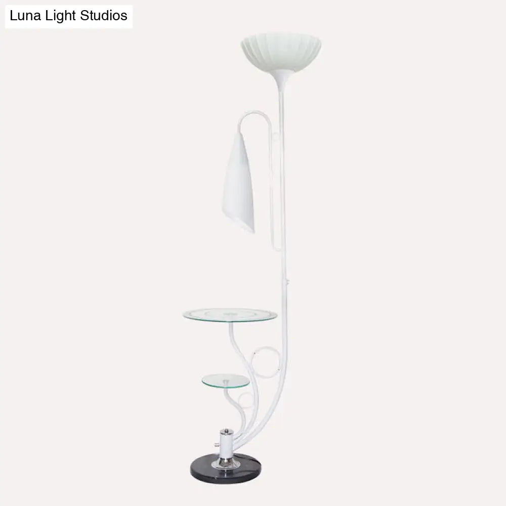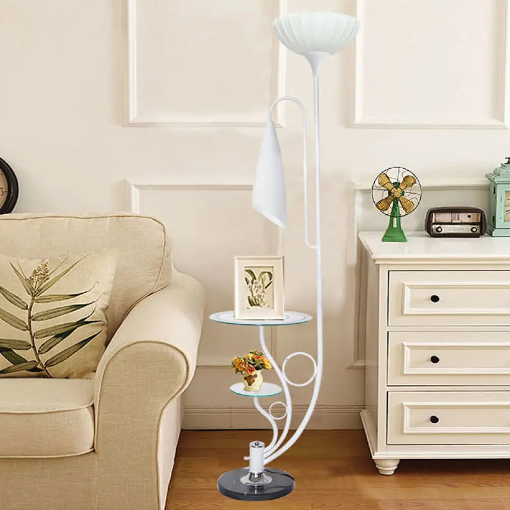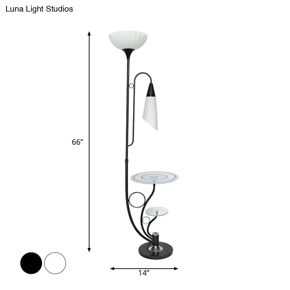 Beveled Crystal Tree Floor Lamp - Floral 2-Head Design - Black/White - Rural Style