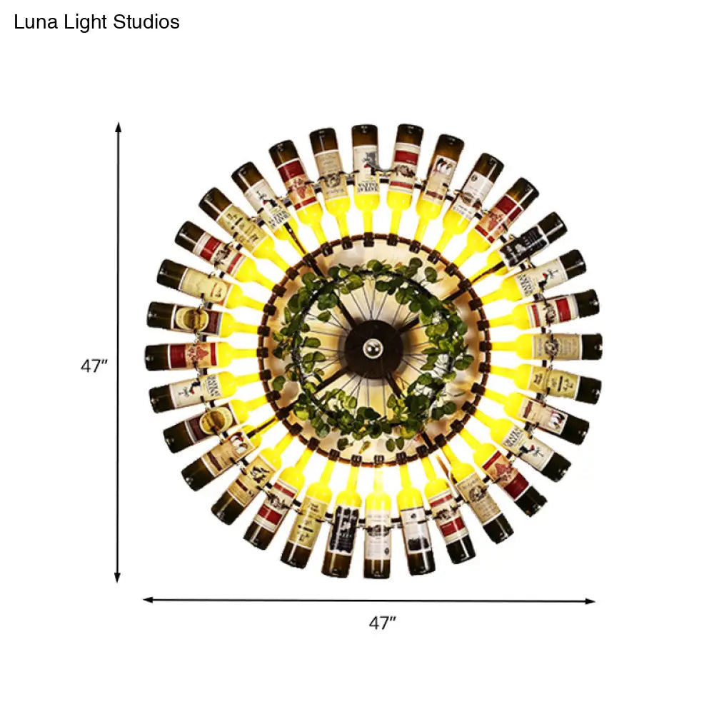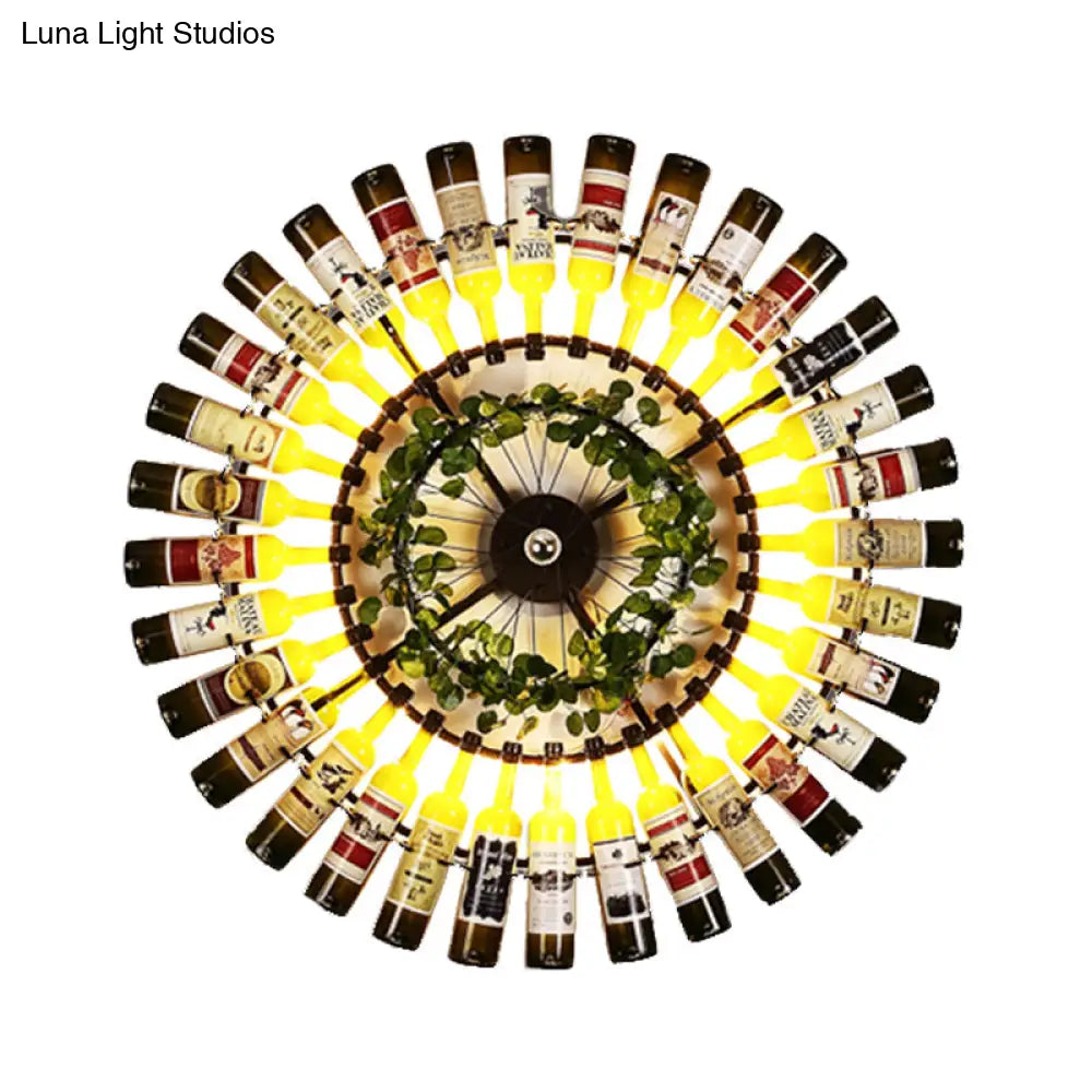 Black Antique Metal Wine Bottle LED Wall Sconce Light with Plant Decor - 1 Light Wall Lamp