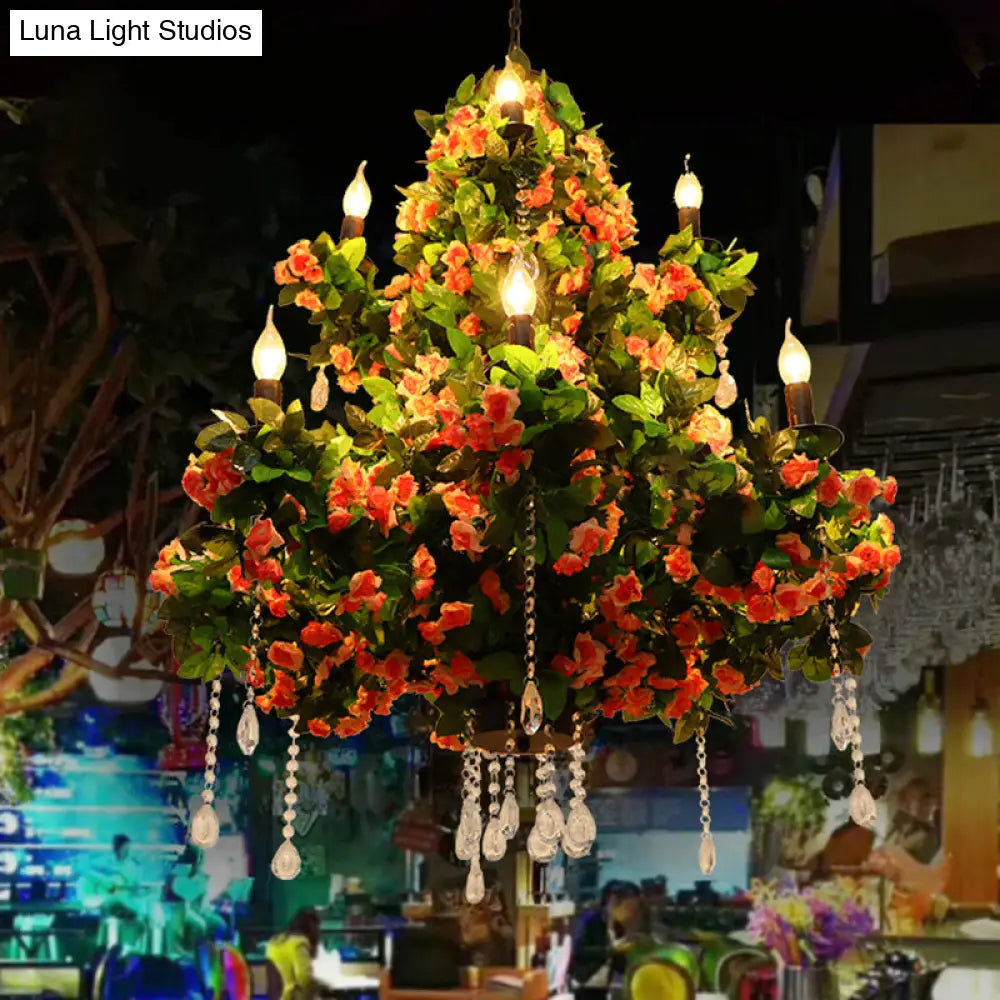 Industrial Metal Chandelier with Crystal Accents and LED Candles