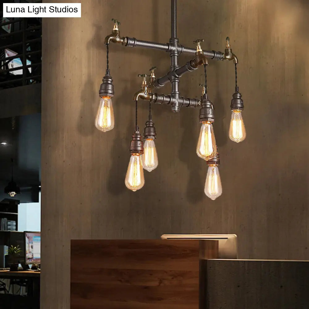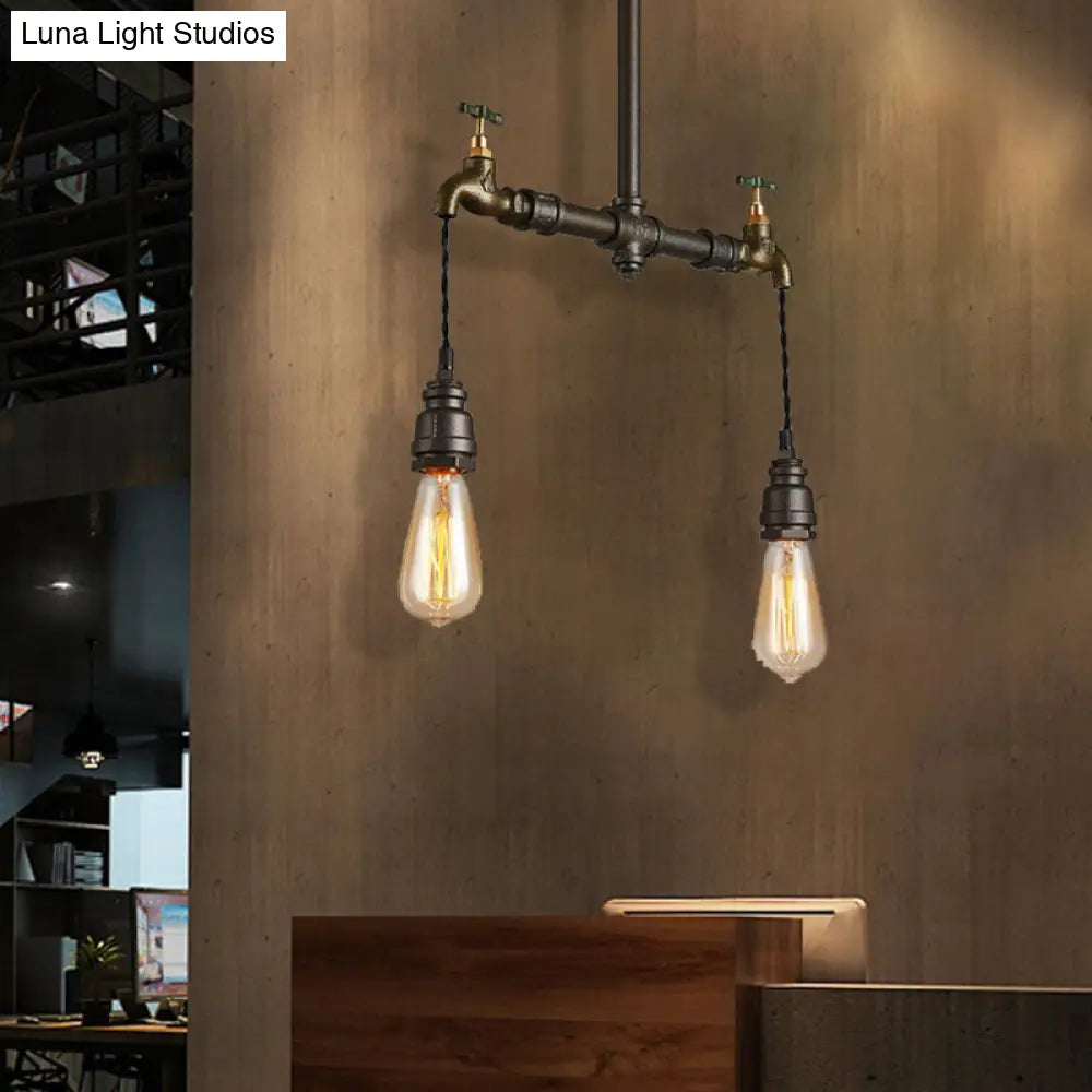 Vintage Black Chandelier Pendant Light with Exposed Bulbs - 2/4/6 Lights