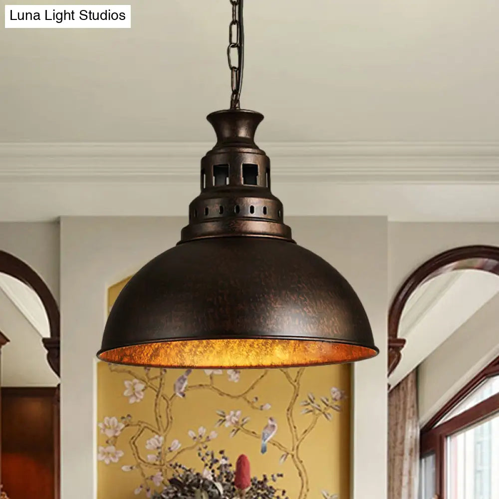 Black/Brass 1-Light Hanging Pendant for Dining Room - Loft Style Dome Shade Fixture