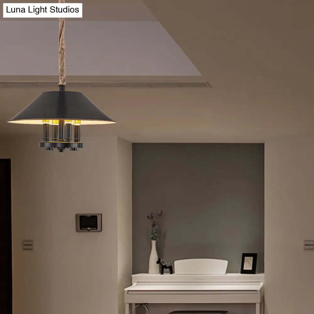 Vintage Black Cone Shade Chandelier with 4 Lights - Metal Pendant Lamp for Dining Room