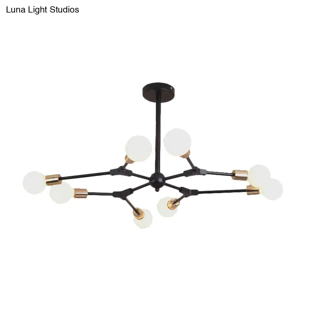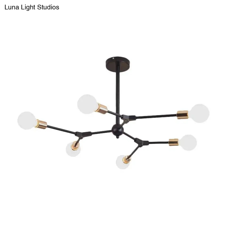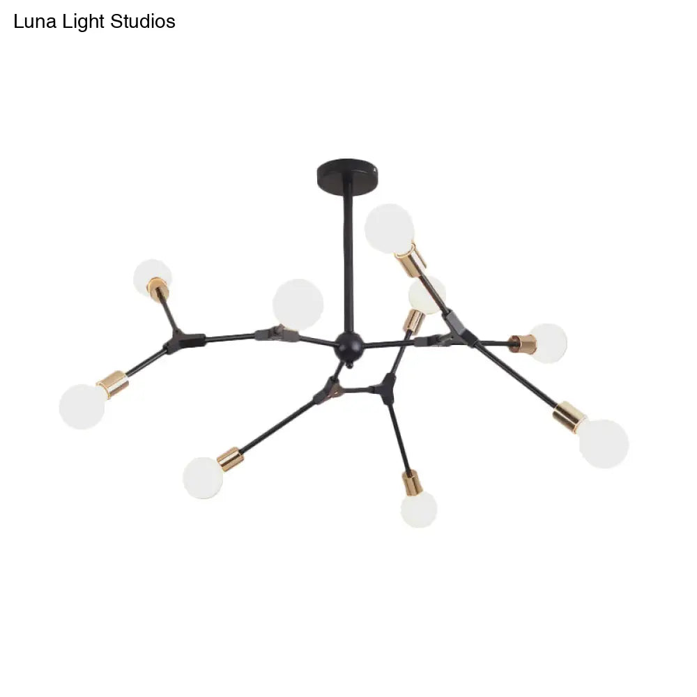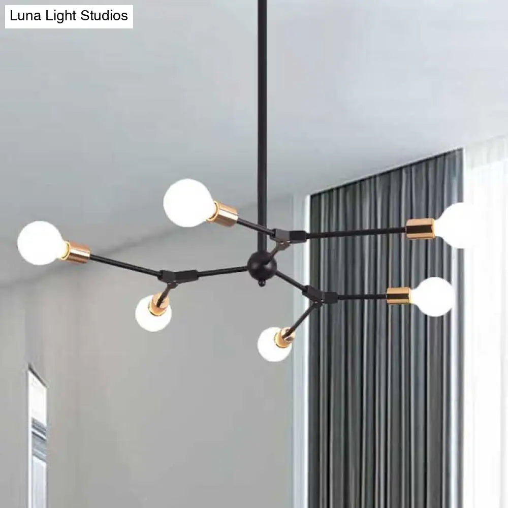 Retro Style Black Branch Suspension Light with Metallic Finish – Bedroom Chandelier Lamp (6/8 Lights) - Open Bulb Design