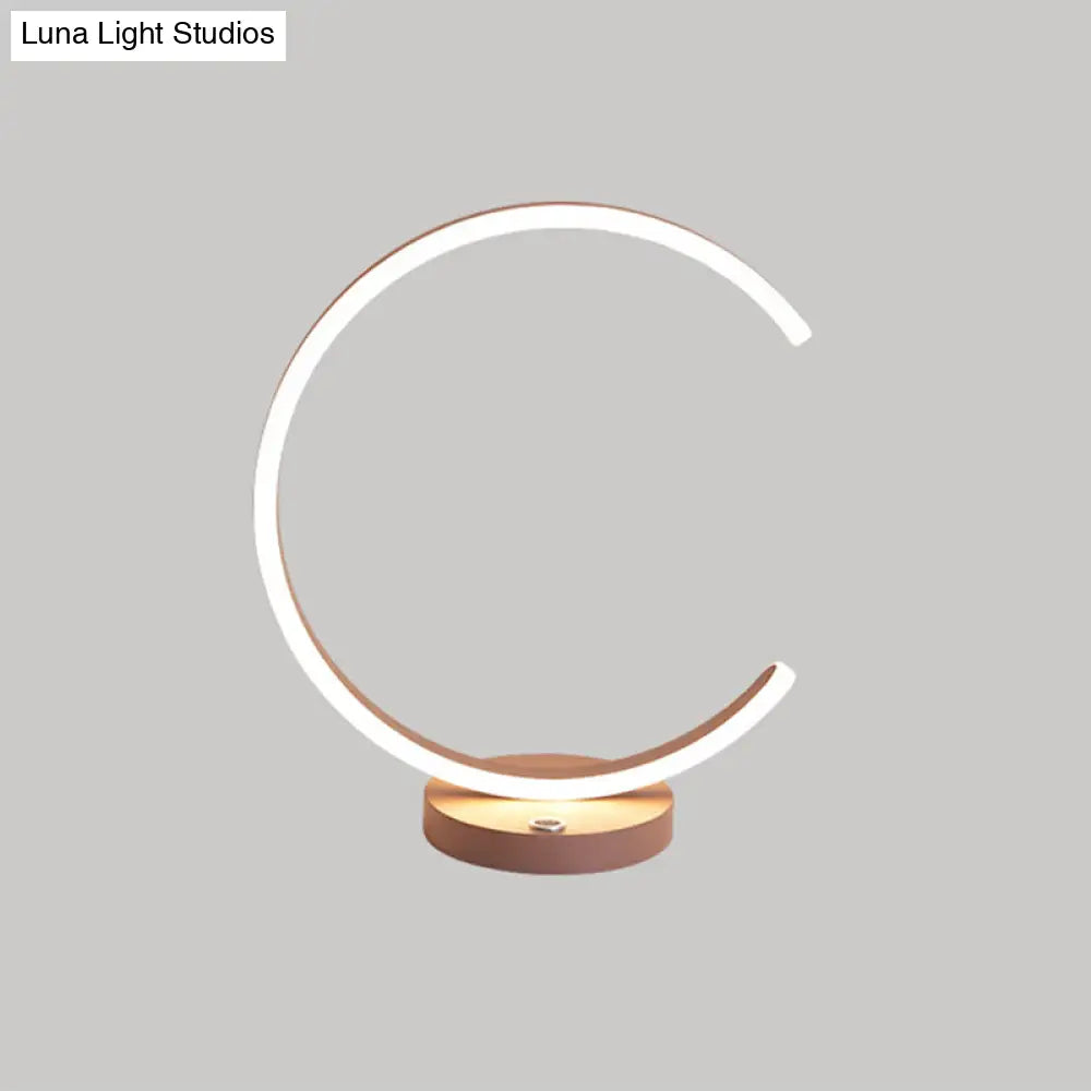 C-Shape Metal LED Desk Lamp for Nightstand Lighting in Coffee, Warm/White Light