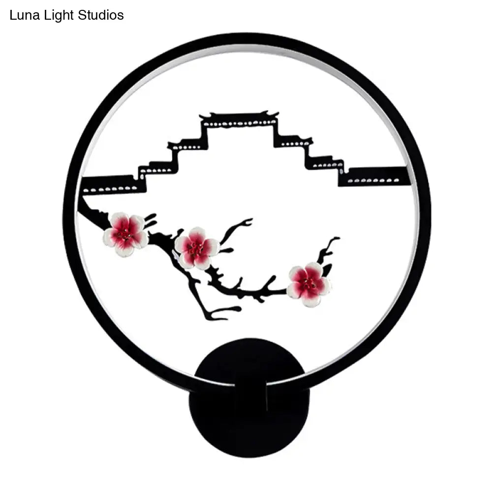 Black Ceramic Plum Flower Mural LED Bedside Lamp with Ring