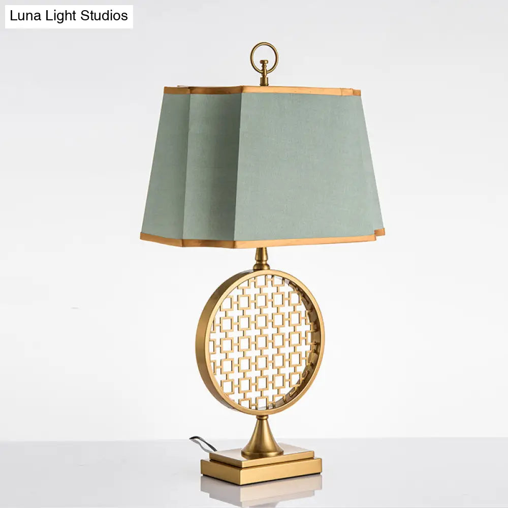 Chinese Style LED Desk Lamp with Gold Drum Shape & Green Fabric Shade