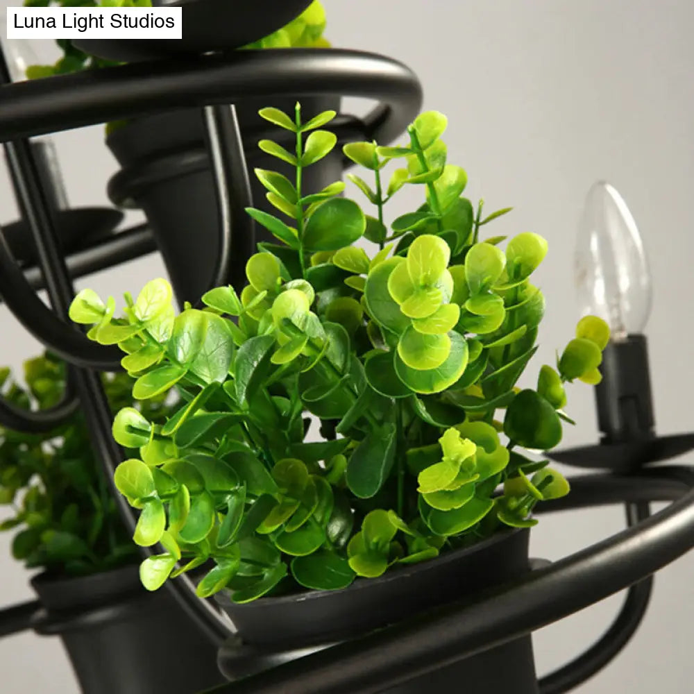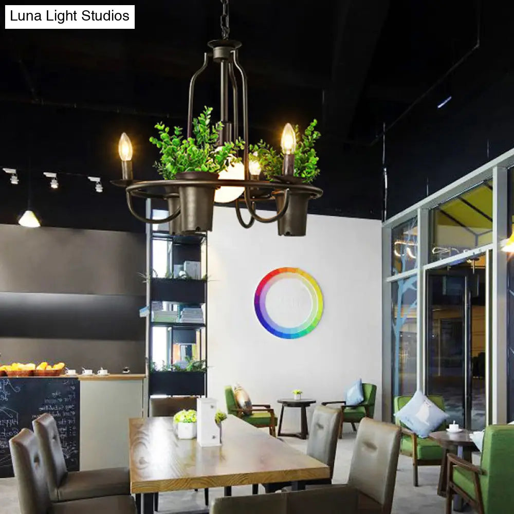 Country Metallic 4-Light Green Pendant Chandelier with Leaf Decoration - Circle Dining Room Light