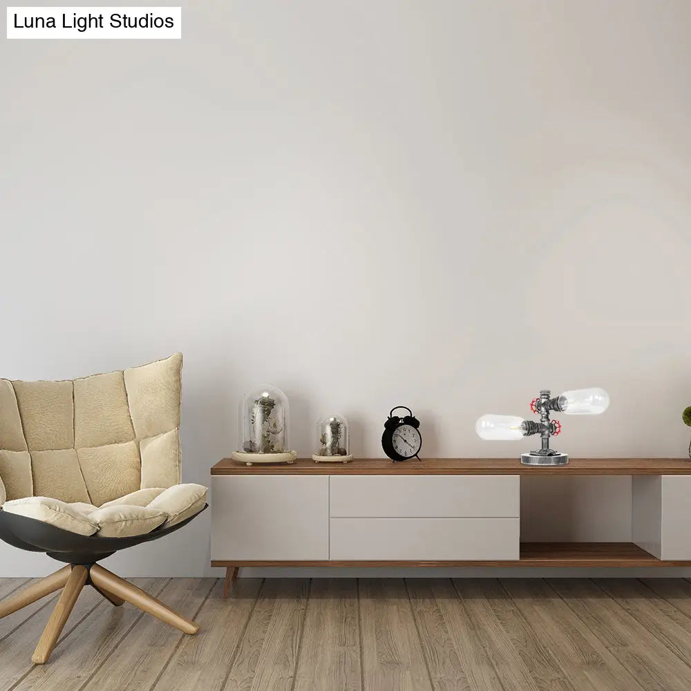 Clear/Amber Glass Antique Silver 2-Light Industrial Desk Lamp with Capsule Shade - Perfect for Living Room