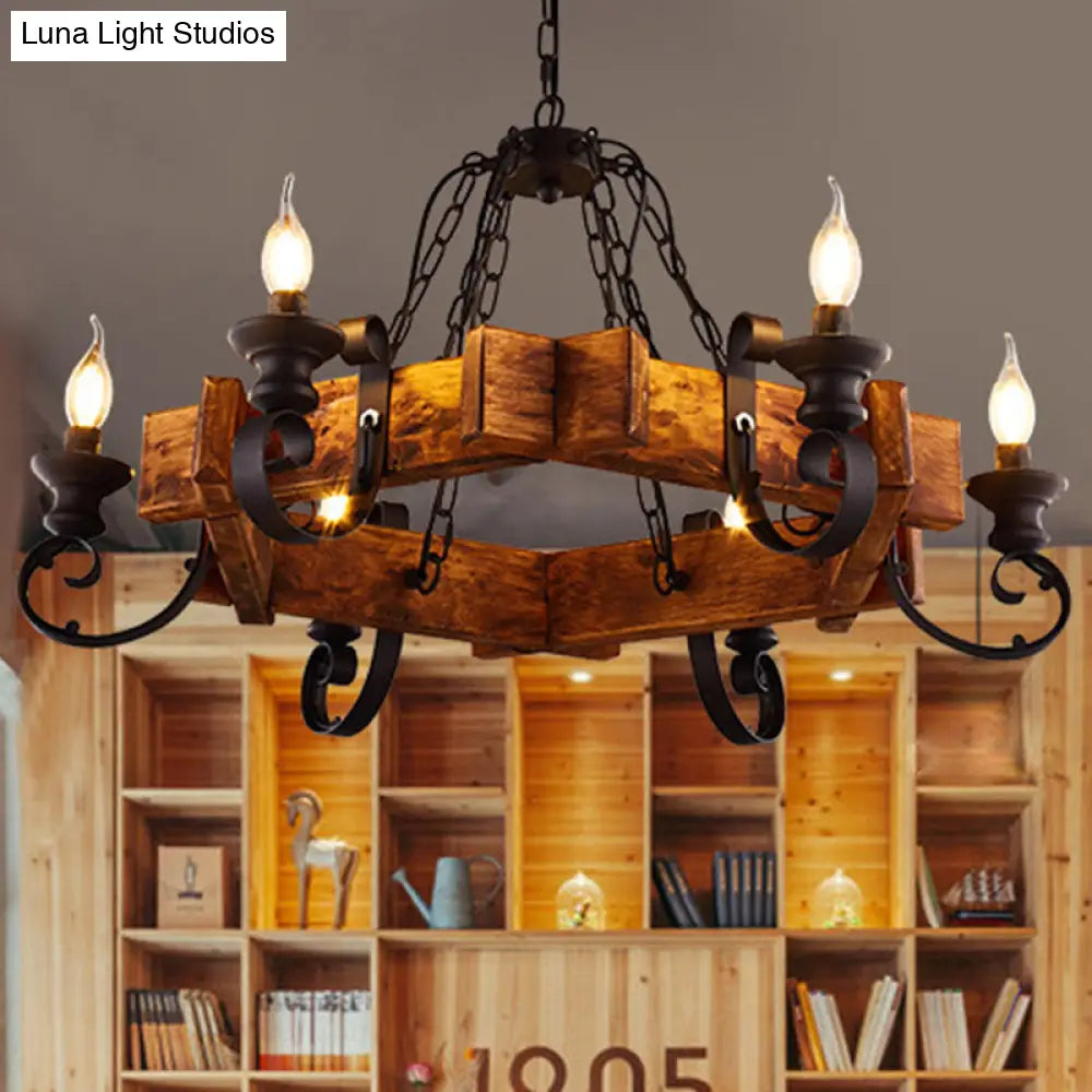 Vintage 6-Light Candle Chandelier with Clear Glass and Wooden Backplate