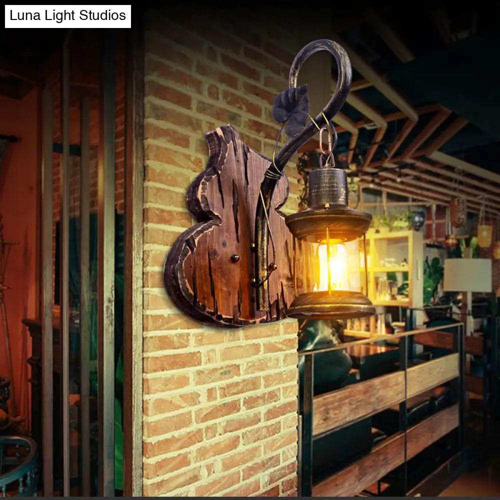 Coastal Lantern Wall Light Fixture, Antique Brass with Clear Glass Shade