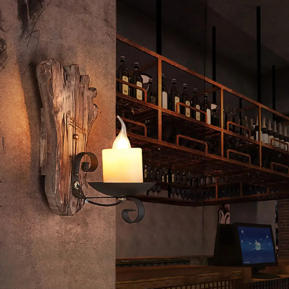 Coastal Marble Cylinder Coffee Shop Wall Light Fixture - 1 Light Brown Sconce Lamp with Wooden Base