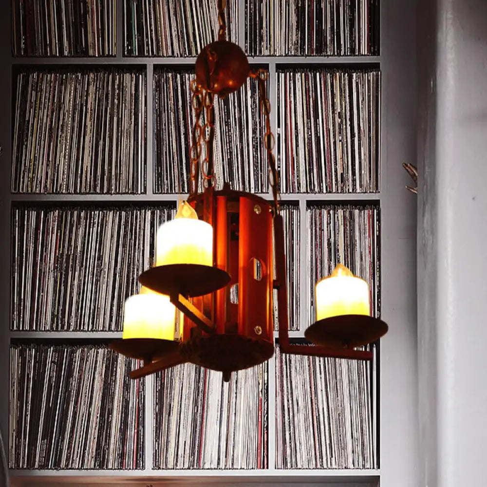 Vintage Metallic 3-Light Dark Tan Candle Chandelier for Bedroom Pendant Lighting